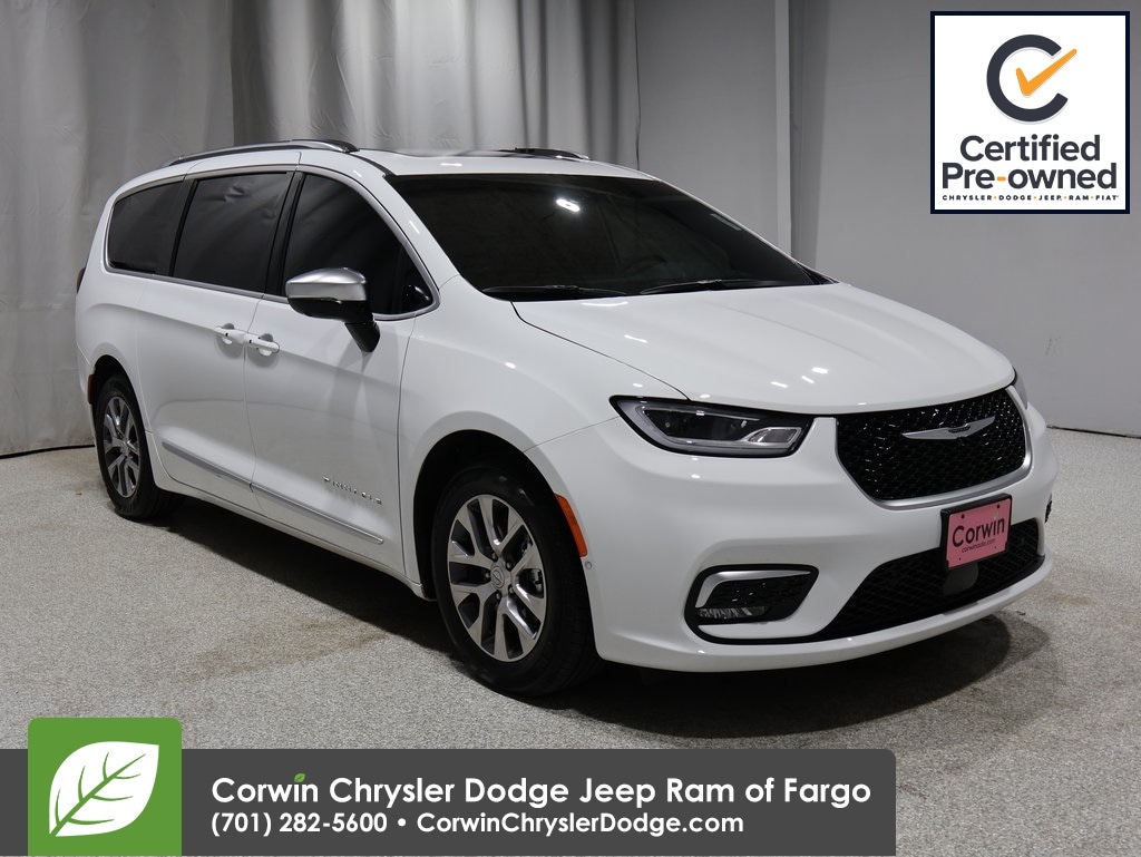 HAPPY FALL AT CORWIN CHRYSLER DODGE JEEP RAM OF FARGO!! WE HAVE GREAT SAVINGS ON ALL OF OUR PRE-OWNED VEHICLES AVAILABLE!! WE HAVE ONE OF THE LARGEST SELECTIONS OF INVENTORIES IN OUR AREA AT ONE LOCATION!! Recent Arrival! Bright White Clearcoat 2025 Chrysler Pacifica Hybrid Pinnacle FACTORY CERTIFIED 4D Passenger Van FWD 3.6L V6 Certified. CARFAX One-Owner. Clean CARFAX.