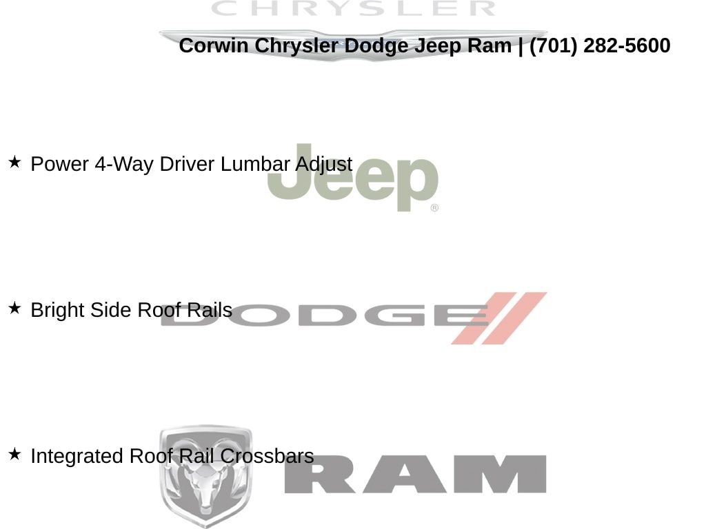 Corwin is the largest Chrysler Dodge Jeep Ram dealer in the region! We have a huge selection of new & used vehicles with financing options for everyone. Here at Corwin Chrysler Dodge Jeep Ram we're not only here to help you find your next car, we are your go-to source for all things automotive! Our expert dealership staff is here to help you with auto financing, car maintenance and repairs, or even finding the right parts for your next DIY project. Stop by our new and used car dealership in Fargo today and find out why folks keep coming back! We're here to help you get into the vehicle of your dreams and keep it running its best for many miles. Corwin Chrysler Dodge Jeep Ram 301 38th St S, Fargo, North Dakota CorwinChryslerDodge.com Corwin - Family Driven for Over 100 YearS.