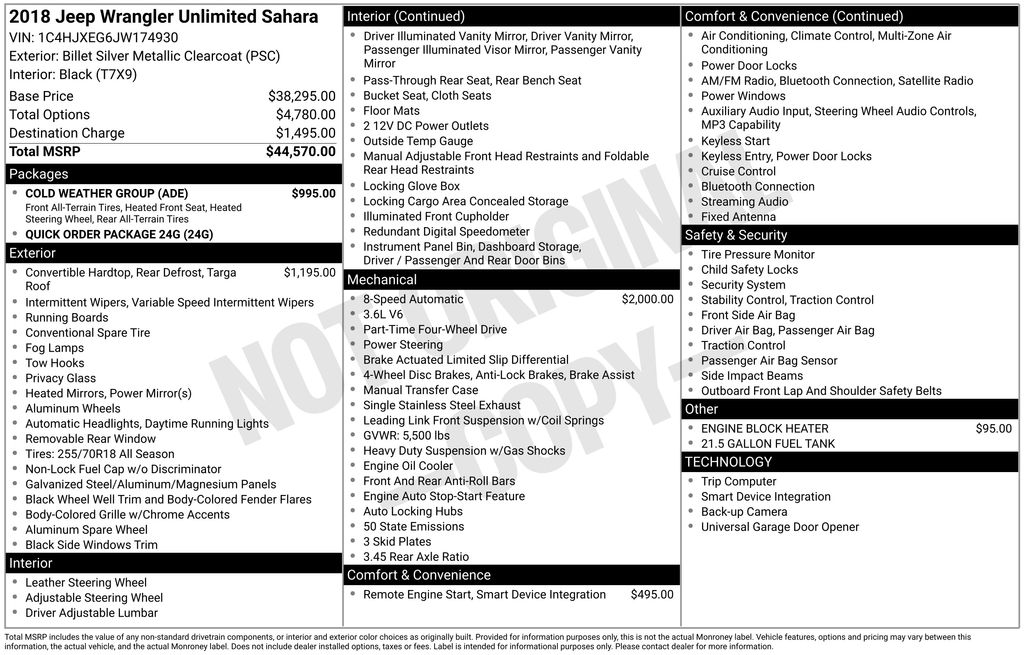 WELCOME TO DECEMBER AT CORWIN CHRYSLER DODGE JEEP RAM OF FARGO!! WE HAVE GREAT SAVINGS ON ALL OF OUR PRE-OWNED VEHICLES AVAILABLE!! WE HAVE ONE OF THE LARGEST SELECTIONS OF INVENTORIES IN OUR AREA AT ONE SINGLE LOCATION!! Recent Arrival! Billet Silver Metallic Clearcoat 2018 Jeep Wrangler Unlimited Sahara FACTORY CERTIFIED 4D Sport Utility 4WD 3.6L V6 24V VVT Certified. Clean CARFAX.