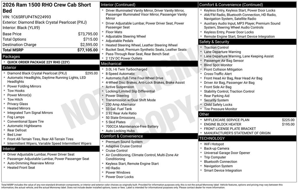 2026 Ram 1500 RHO CREW CAB 4X4 5'7 BOX Pickup