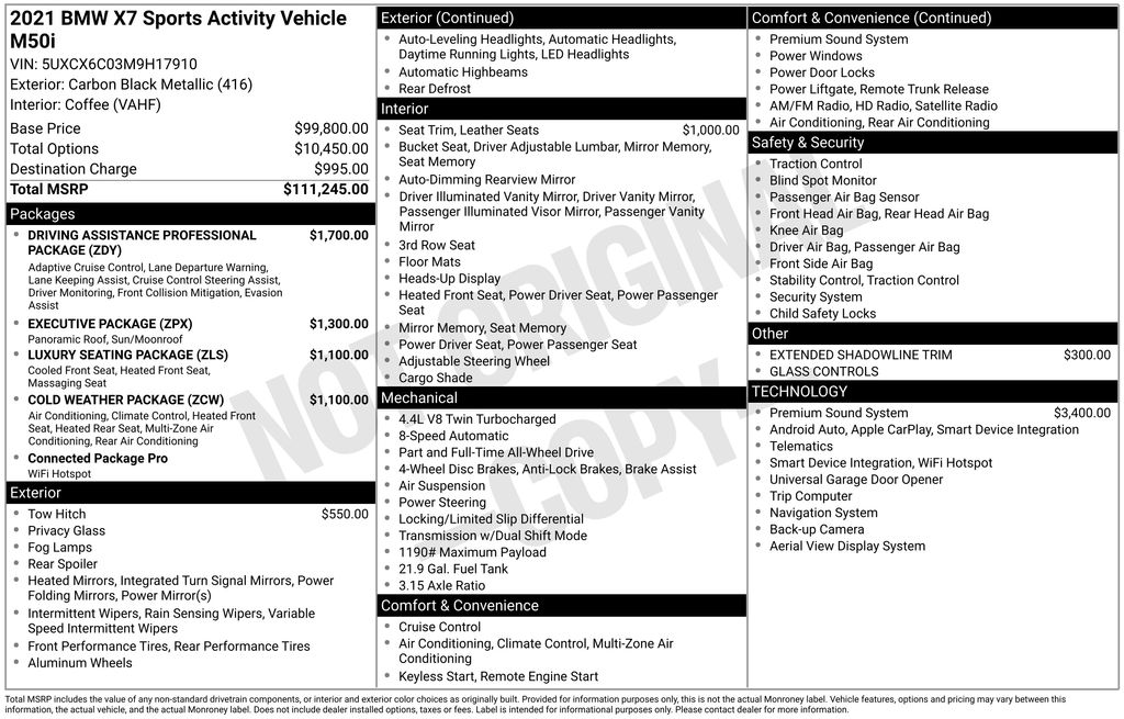 HAPPY NEW YEARS FROM CORWIN CHRYSLER DODGE JEEP RAM OF FARGO!! WE HAVE SAVINGS ON ALL OF OUR PRE-OWNED VEHICLES AVAILABLE!! WE HAVE ONE OF THE LARGEST SELECTION OF INVENTORIES IN OUR AREA AT ONE SINGLE LOCATION!! Recent Arrival! Priced below KBB Fair Purchase Price! Carbon Black Metallic 2021 BMW X7 M50i 4D Sport Utility AWD 4.4L V8 DOHC 32V CARFAX One-Owner. Clean CARFAX.