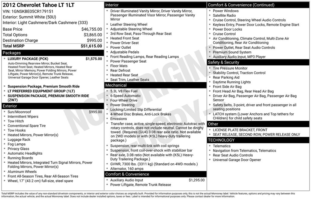 LETS MARCH INTO SPRING AT CORWIN CHRYSLER DODGE JEEP RAM OF FARGO!! WE HAVE SAVINGS ON ALL OF OUR PRE-OWNED VEHICLES AVAILABLE!! WE HAVE ONE OF THE LARGEST SELECTIONS OF INVENTORIES IN OUR AREA AT ONE SINGLE LOCATION!! Recent Arrival! Summit White 2012 Chevrolet Tahoe LT 4D Sport Utility 4WD Vortec 5.3L V8 SFI Flex Fuel Iron Block