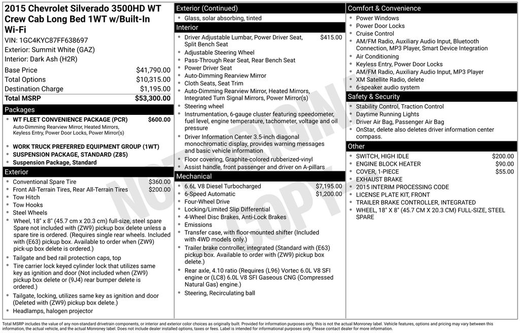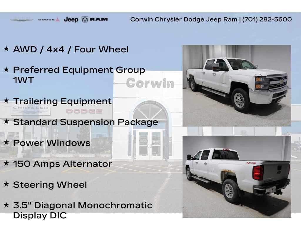 TIME TO SPRING INTO APRIL AT CORWIN CHRYSLER DODGE JEEP RAM OF FARGO!! WE HAVE SAVINGS ON ALL OF OUR PRE-OWNED VEHICLES AVAILABLE!! WE HAVE ONE OF THE LARGEST SELECTIONS OF INVENTORIES IN OUR AREA AT ONE SINGLE LOCATION !! Priced below KBB Fair Purchase Price! Summit White 2015 Chevrolet Silverado 3500HD Work Truck 4D Crew Cab 4WD Duramax 6.6L V8 Turbodiesel