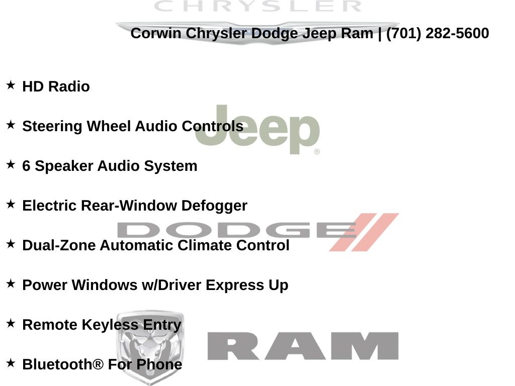 Corwin is the largest Chrysler Dodge Jeep Ram dealer in the region! We have a huge selection of new & used vehicles with financing options for everyone. Here at Corwin Chrysler Dodge Jeep Ram we're not only here to help you find your next car, we are your go-to source for all things automotive! Our expert dealership staff is here to help you with auto financing, car maintenance and repairs, or even finding the right parts for your next DIY project. Stop by our new and used car dealership in Fargo today and find out why folks keep coming back! We're here to help you get into the vehicle of your dreams and keep it running its best for many miles. Corwin Chrysler Dodge Jeep Ram 301 38th St S, Fargo, North Dakota CorwinChryslerDodge.com Corwin - Family Driven for Over 100 YearS.
