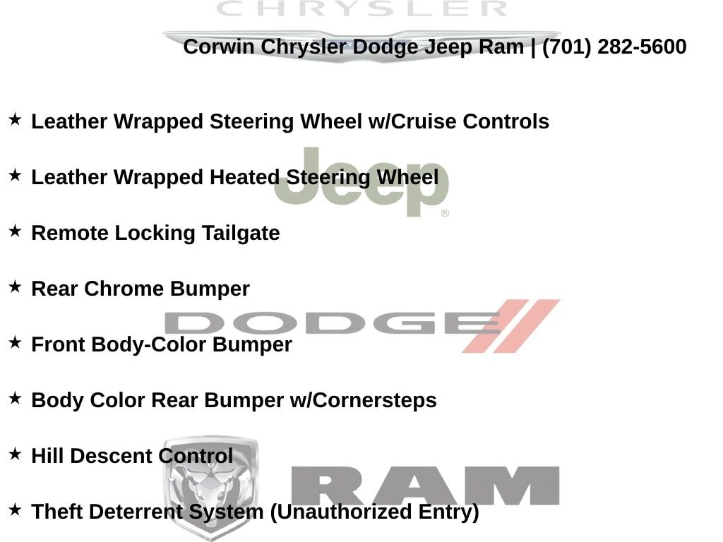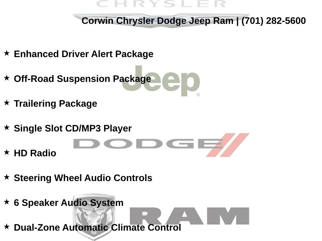 Corwin is the largest Chrysler Dodge Jeep Ram dealer in the region! We have a huge selection of new & used vehicles with financing options for everyone. Here at Corwin Chrysler Dodge Jeep Ram we're not only here to help you find your next car, we are your go-to source for all things automotive! Our expert dealership staff is here to help you with auto financing, car maintenance and repairs, or even finding the right parts for your next DIY project. Stop by our new and used car dealership in Fargo today and find out why folks keep coming back! We're here to help you get into the vehicle of your dreams and keep it running its best for many miles. Corwin Chrysler Dodge Jeep Ram 301 38th St S, Fargo, North Dakota CorwinChryslerDodge.com Corwin - Family Driven for Over 100 YearS.