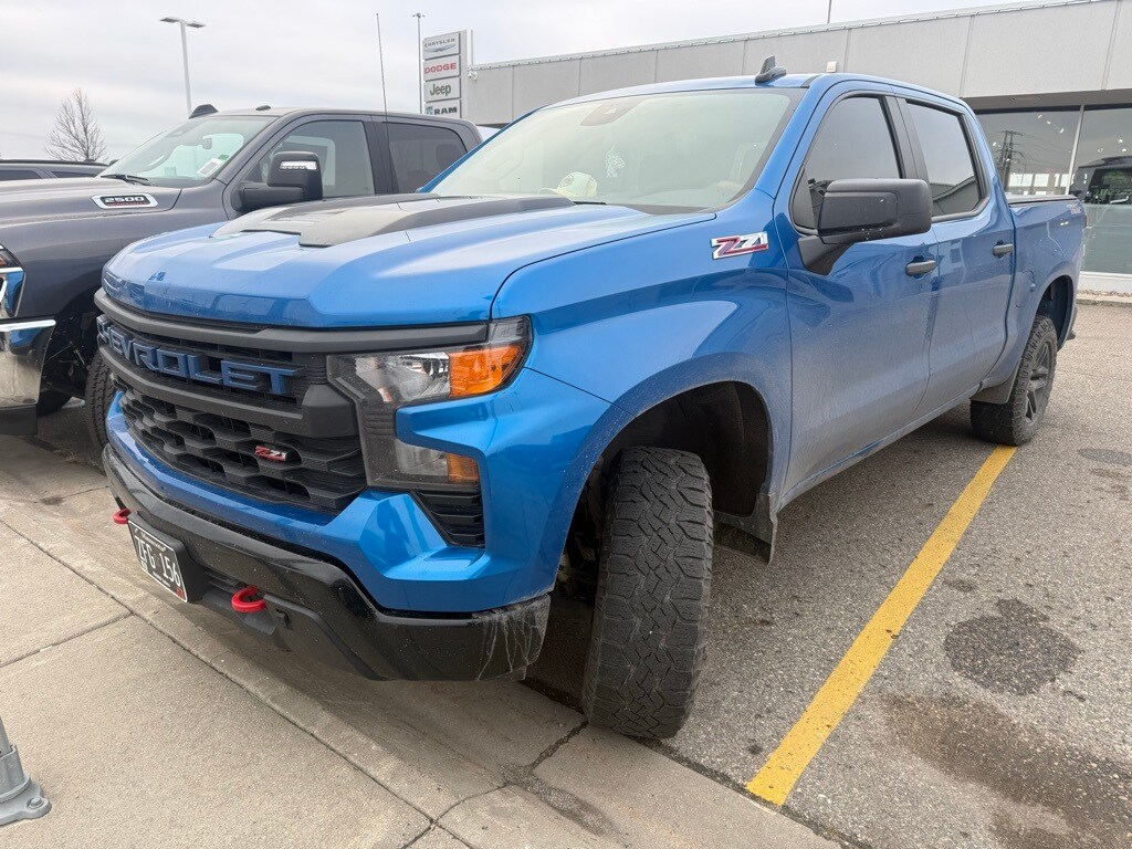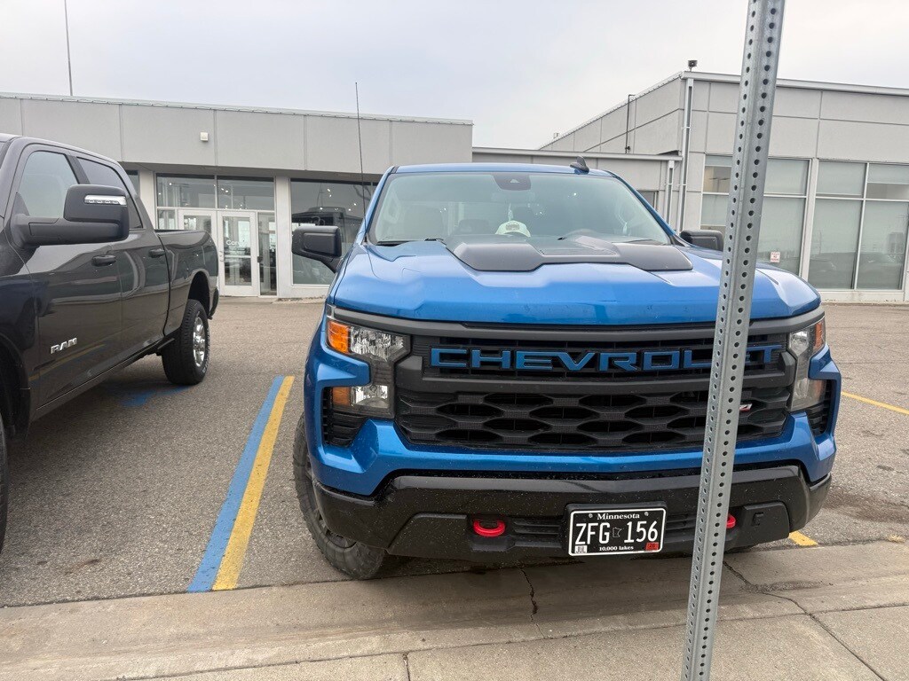 HAPPY FALL FROM CORWIN CHRYSLER DODGE JEEP RAM OF FARGO!! WE HAVE GREAT SAVINGS ON ALL OF OUR PRE-OWNED VEHICLES AVAILABLE!! WE HAVE ONE OF THE LARGEST SELECTIONS OF INVENTORIES IN OUR AREA AT ONE SINGLE LOCATION!! Recent Arrival! Blue 2023 Chevrolet Silverado 1500 Custom Trail Boss 4D Crew Cab 4WD EcoTec3 5.3L V8
