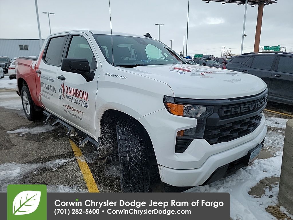 WELCOME TO DECEMBER AT CORWIN CHRYSLER DODGE JEEP RAM OF FARGO!! WE HAVE GREAT SAVINGS ON ALL OF OUR PRE-OWNED VEHICLES AVAILABLE!! WE HAVE ONE OF THE LARGEST SELECTIONS OF INVENTORIES IN OUR AREA AT ONE SINGLE LOCATION!! Recent Arrival! Priced below KBB Fair Purchase Price! Summit White 2023 Chevrolet Silverado 1500 Custom 4D Crew Cab 4WD 2.7L Turbo CARFAX One-Owner. Clean CARFAX.