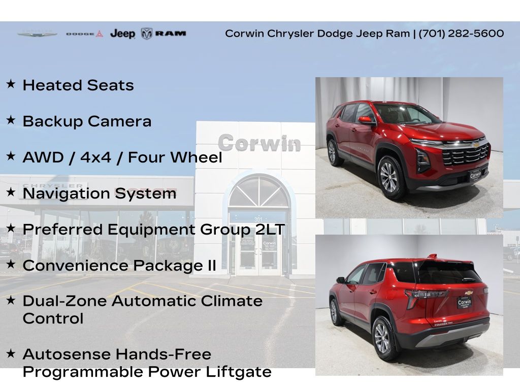 EMBRACE THE SHORTEST MONTH OF THE YEAR WITH CORWIN CHRYSLER DODGE JEEP RAM OF FARGO! WE HAVE SAVINGS ON ALL OF OUR PRE-OWNED VEHICLES AVAILABLE!! WE HAVE ONE OF THE LARGEST SELECTIONS OF INVENTORIES IN OUR AREA AT ONE SINGLE LOCATION!! Recent Arrival! Priced below KBB Fair Purchase Price! Radiant Red Tintcoat 2026 Chevrolet Equinox LT 4D Sport Utility AWD 1.5L DOHC CARFAX One-Owner. Clean CARFAX.