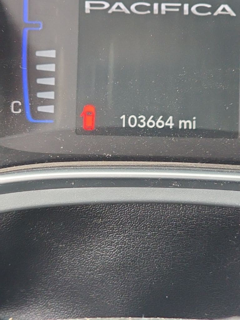 This Chrysler Pacifica is well equipped and includes these key features and benefits, Heated Seats, Touchscreen Controls, Backup Camera, Automatic Headlights, Bluetooth Handsfree, Black Badging, Black Chrysler Grille Wing Badge, Black Day Light Opening Moldings, Black Spear Rear Fascia Applique, Body Color Door Handles, Bridgestone Brand Tires, Cloth Bucket Seats w/S Logo, Cold Weather Group, Heated Front Seats, Heated Steering Wheel, Leather Wrapped Steering Wheel, Premium Fascia Upper/Lower Grille w/Black Surround, Quick Order Package 27W, S Appearance Package, S Badge, Wheels: 18" x 7.5" Aluminum Black Noise. 19/28 City/Highway MPG