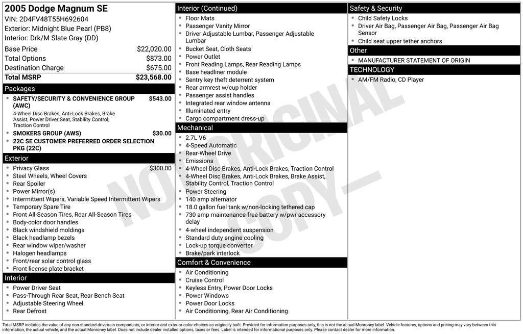 EMBRACE THE SHORTEST MONTH OF THE YEAR WITH CORWIN CHRYSLER DODGE JEEP RAM OF FARGO! WE HAVE SAVINGS ON ALL OF OUR PRE-OWNED VEHICLES AVAILABLE!!WE HAVE ONE OF THE LARGEST SELECTIONS OF INVENTORIES IN OUR AREA AT ONE SINGLE LOCATION!! Recent Arrival! Midnight Blue Pearlcoat 2005 Dodge Magnum SE 4D Wagon RWD 2.7L V6 MPI DOHC 24V