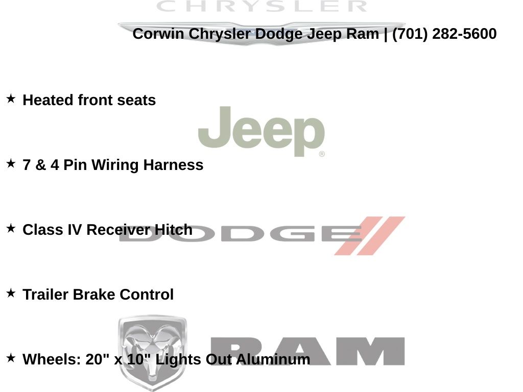 Corwin is the largest Chrysler Dodge Jeep Ram dealer in the region! We have a huge selection of new & used vehicles with financing options for everyone. Here at Corwin Chrysler Dodge Jeep Ram we're not only here to help you find your next car, we are your go-to source for all things automotive! Our expert dealership staff is here to help you with auto financing, car maintenance and repairs, or even finding the right parts for your next DIY project. Stop by our new and used car dealership in Fargo today and find out why folks keep coming back! We're here to help you get into the vehicle of your dreams and keep it running its best for many miles. Corwin Chrysler Dodge Jeep Ram 301 38th St S, Fargo, North Dakota CorwinChryslerDodge.com Corwin - Family Driven for Over 100 YearS.