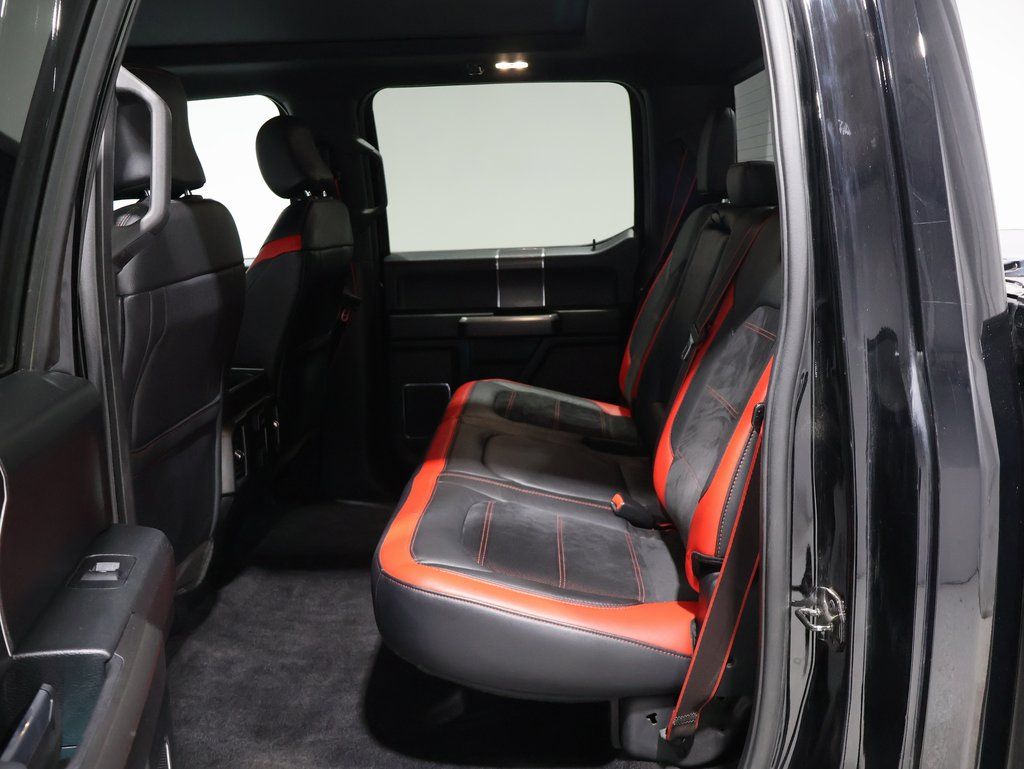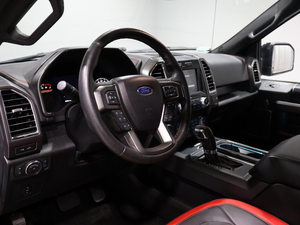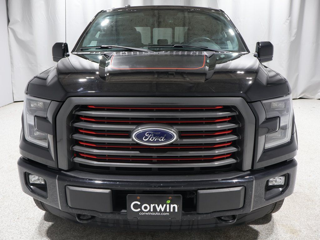 This Ford F-150 is well equipped and includes these key features and benefits, Heated and Cooled Seats, Touchscreen Controls, Backup Camera, Automatic Headlights, Bluetooth Handsfree, AWD / 4x4 / Four Wheel, 110V/400W Outlet, 2nd Row Heated Seats, 4x4 FX4 Off-Road Bodyside Decal, Accent-Color 3-Bar Style Grille, Accent-Color Angular Step Bars, Auto High Beam w/Rain-Sensing Windshield Wipers, Auxiliary Transmission Oil Cooler, Black Running Boards, BLIS Blind Spot Information System, Body-Color Front & Rear Bumpers, Box Side Decal, Class IV Trailer Hitch Receiver, Equipment Group 502A Luxury, Front & Rear Off-Road Tuned Shock Absorbers, FX4 Off-Road Package, Heated front seats, Heated Steering Wheel, Hill Descent Control, Lariat Chrome Appearance Package, Lariat Special Edition Package, Lariat Sport Appearance Package, Leather-Trimmed Bucket Seats, LED Side-Mirror Spotlights, Power Glass Sideview Mirr w/Chrome Skull Caps, Power Tilt/Telescoping Steering Column w/Memory, Pro Trailer Backup Assist, Quad Beam LED Headlamps & Taillamps, Radio: Sony Single CD w/HD & SiriusXM Satellite, Remote Start System w/Remote Tailgate Release, Reverse Sensing System, Single-Tip Chrome Exhaust, Tarnished Dark Grille w/Red Accent, Trailer Tow Package, Unique Bodyside & Hood Decals, Unique Special Edition 40/Console/40 Front Seats, Universal Garage Door Opener, Upgraded Front Stabilizer Bar, Ventilated front seats, Voice-Activated Navigation, Wheels: 18" 6-Spoke Machined-Aluminum, Wheels: 20" Unique Premium Tarnished Dark Painted. Odometer is 11174 miles below market average!