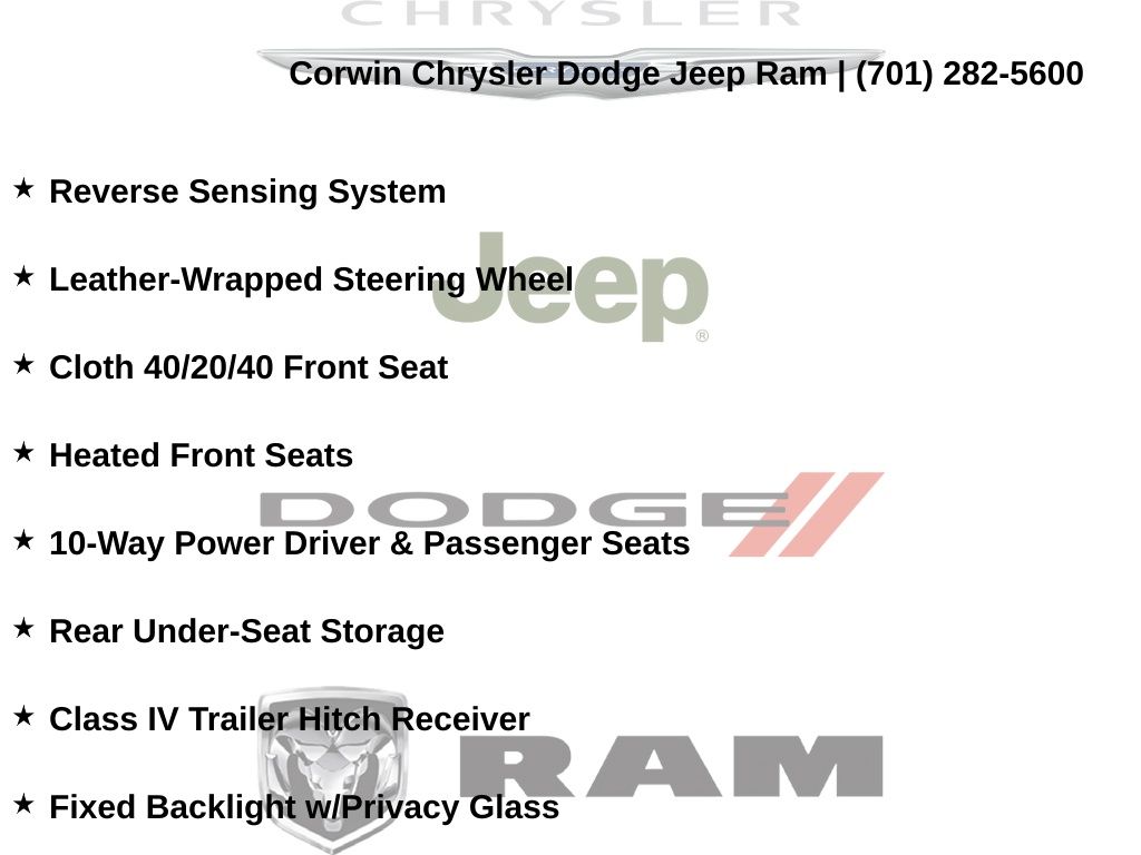 Corwin is the largest Chrysler Dodge Jeep Ram dealer in the region! We have a huge selection of new & used vehicles with financing options for everyone. Here at Corwin Chrysler Dodge Jeep Ram we're not only here to help you find your next car, we are your go-to source for all things automotive! Our expert dealership staff is here to help you with auto financing, car maintenance and repairs, or even finding the right parts for your next DIY project. Stop by our new and used car dealership in Fargo today and find out why folks keep coming back! We're here to help you get into the vehicle of your dreams and keep it running its best for many miles. Corwin Chrysler Dodge Jeep Ram 301 38th St S, Fargo, North Dakota CorwinChryslerDodge.com Corwin - Family Driven for Over 100 YearS.