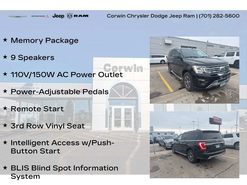 MARCHING INTO SPRING AT CORWIN CHRYSLER DODGE JEEP RAM OF FARGO!! WE HAVE SAVINGS ON ALL OF OUR PRE-OWNED VEHICLES AVAILABLE!! WE HAVE ONE OF THE LARGEST SELECTIONS OF INVENTORIES IN OUR AREA AT ONE SINGLE LOCATION!! Recent Arrival! Black 2019 Ford Expedition XLT 4D Sport Utility 4WD EcoBoost 3.5L V6 GTDi DOHC 24V Twin Turbocharged Clean CARFAX.