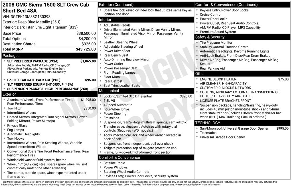 WELCOME TO DECEMBER AT CORWIN CHRYSLER DODGE JEEP RAM OF FARGO!! WE HAVE GREAT SAVINGS ON ALL OF OUR PRE-OWNED VEHICLES AVAILABLE!! WE HAVE ONE OF THE LARGEST SELECTIONS OF INVENTORIES IN OUR AREA AT ONE SINGLE LOCATION!! Recent Arrival! Deep Blue Metallic 2008 GMC Sierra 1500 SLT 4D Crew Cab 4WD Vortec 5.3L V8 SFI Active Fuel Management Clean CARFAX.