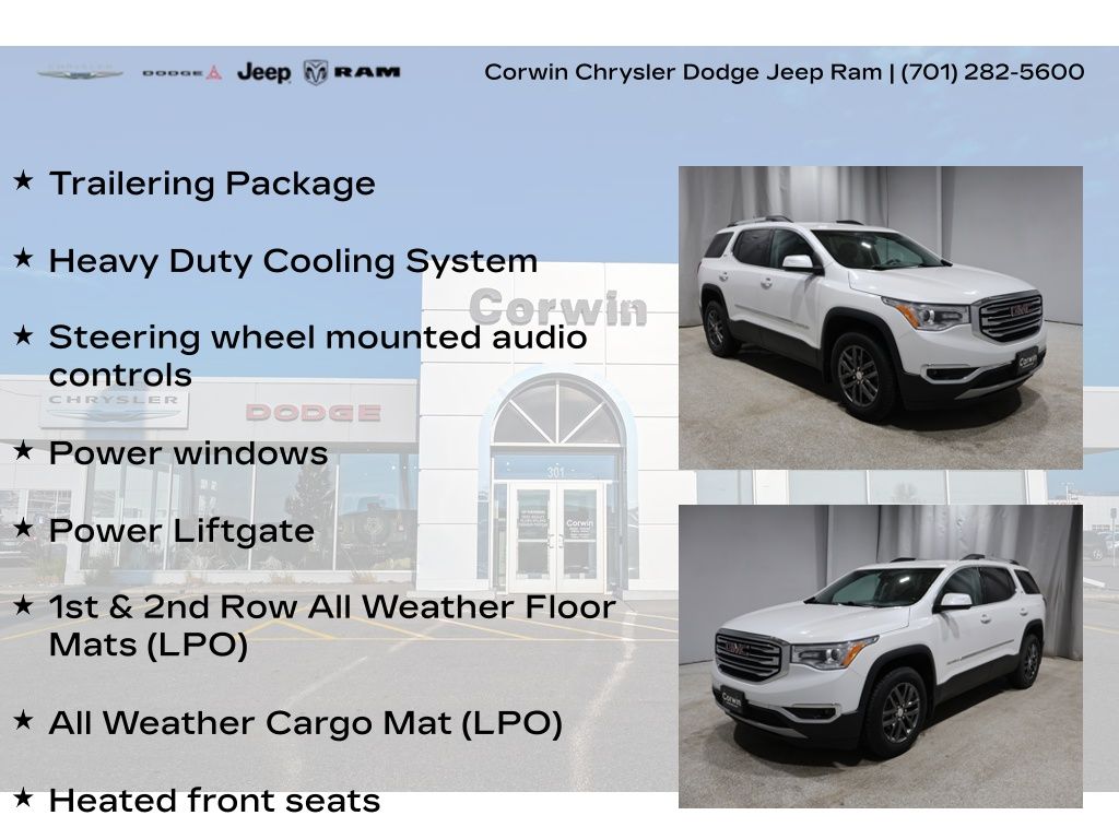 EMBRACE THE SHORTEST MONTH OF THE YEAR WITH CORWIN CHRYSLER DODGE JEEP RAM OF FARGO! WE HAVE SAVINGS ON ALL OF OUR PRE-OWNED VEHICLES AVAILABLE!! WE HAVE ONE OF THE LARGEST SELECTIONS OF INVENTORIES IN OUR AREA AT ONE SINGLE LOCATION!! Recent Arrival! White Frost Tricoat 2018 GMC Acadia SLT-1 4D Sport Utility AWD 3.6L V6 SIDI DOHC VVT Clean CARFAX.