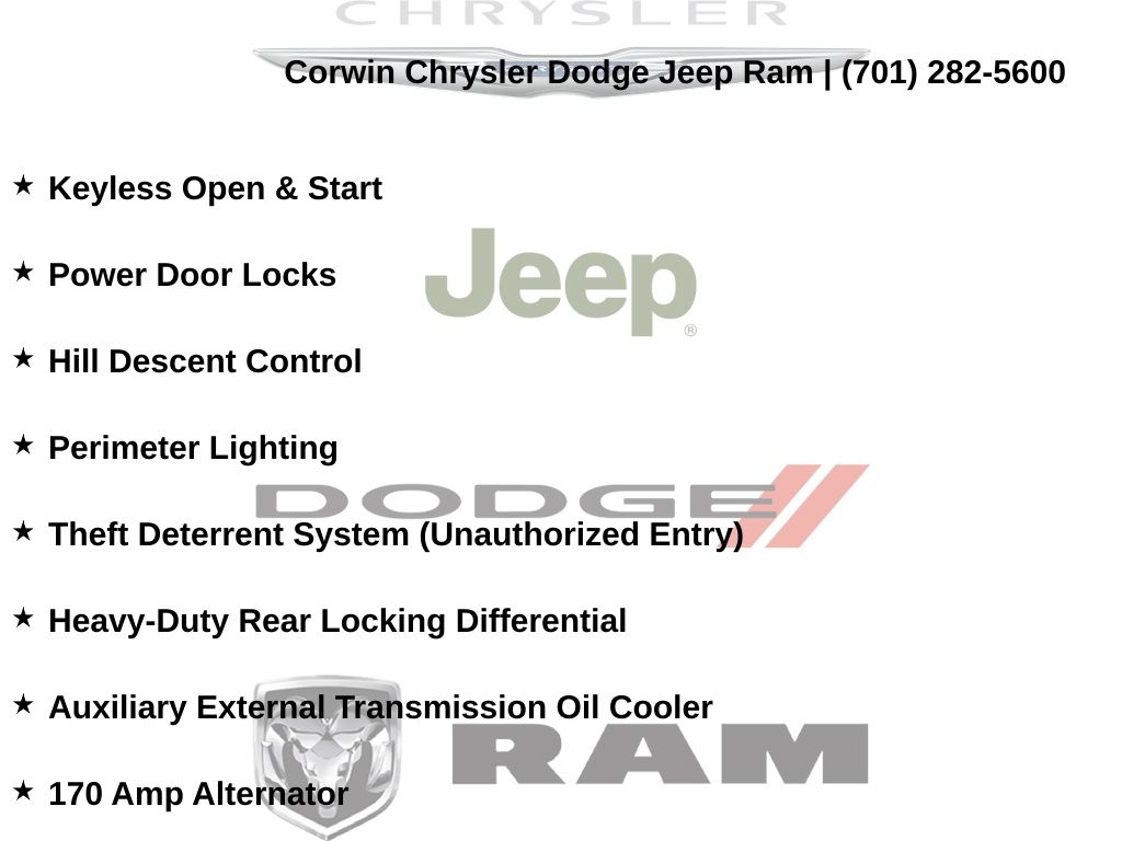 Corwin is the largest Chrysler Dodge Jeep Ram dealer in the region! We have a huge selection of new & used vehicles with financing options for everyone. Here at Corwin Chrysler Dodge Jeep Ram we're not only here to help you find your next car, we are your go-to source for all things automotive! Our expert dealership staff is here to help you with auto financing, car maintenance and repairs, or even finding the right parts for your next DIY project. Stop by our new and used car dealership in Fargo today and find out why folks keep coming back! We're here to help you get into the vehicle of your dreams and keep it running its best for many miles. Corwin Chrysler Dodge Jeep Ram 301 38th St S, Fargo, North Dakota CorwinChryslerDodge.com Corwin - Family Driven for Over 100 YearS.
