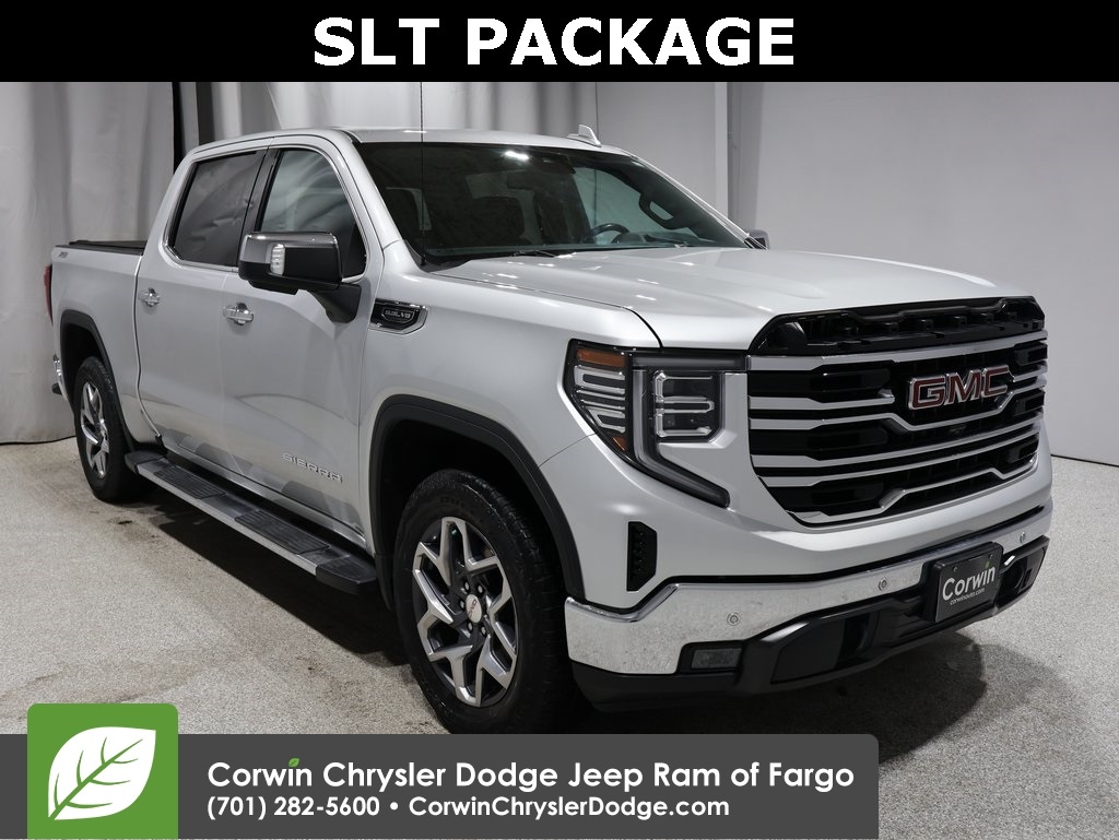 SCARY OCTOBER DEALS GOING ON AT CORWIN CHRYSLER DODGE JEEP RAM OF FARGO!! OFFERING GREAT SAVINGS ON OUR PRE-OWNED VEHICLES AVAILABLE!! WE HAVE ONE OF THE LARGEST SELECTIONS OF INVENTORIES IN OUR AREA AT ONE LOCATION!! Priced below KBB Fair Purchase Price! Quicksilver Metallic 2022 GMC Sierra 1500 SLT 4D Crew Cab 4WD EcoTec3 5.3L V8 CARFAX One-Owner.