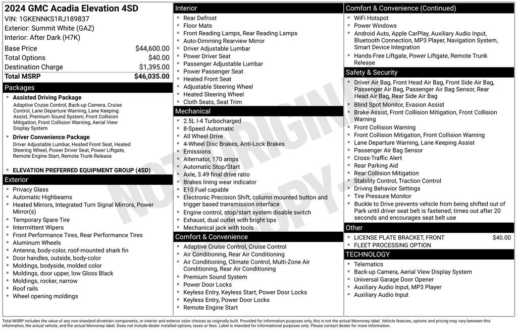 EMBRACE THE SHORTEST MONTH OF THE YEAR WITH CORWIN CHRYSLER DODGE JEEP RAM OF FARGO! WE HAVE SAVINGS ON ALL OF OUR PRE-OWNED VEHICLES AVAILABLE!!WE HAVE ONE OF THE LARGEST SELECTIONS OF INVENTORIES IN OUR AREA AT ONE SINGLE LOCATION!! Recent Arrival! Priced below KBB Fair Purchase Price! Summit White 2024 GMC Acadia Elevation 4D Sport Utility AWD 2.5L DOHC CARFAX One-Owner. Clean CARFAX.