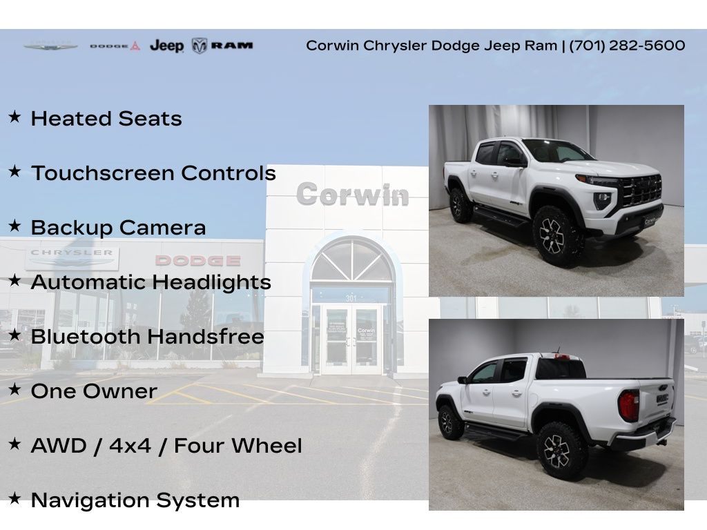 HAPPY JANUARY FROM CORWIN CHRYSLER DODGE JEEP RAM OF FARGO! WE HAVE SAVINGS ON ALL OF OUR PRE-OWNED VEHICLES AVAILABLE! WE HAVE ONE OF THE LARGEST SELECTIONS OF INVENTORIES IN OUR AREA AT ONE SINGLE LOCATION! Recent Arrival! Summit White 2025 GMC Canyon AT4 4D Crew Cab 4WD 2.7L I4 Turbocharged DOHC 16V LEV3-ULEV50 310hp CARFAX One-Owner.