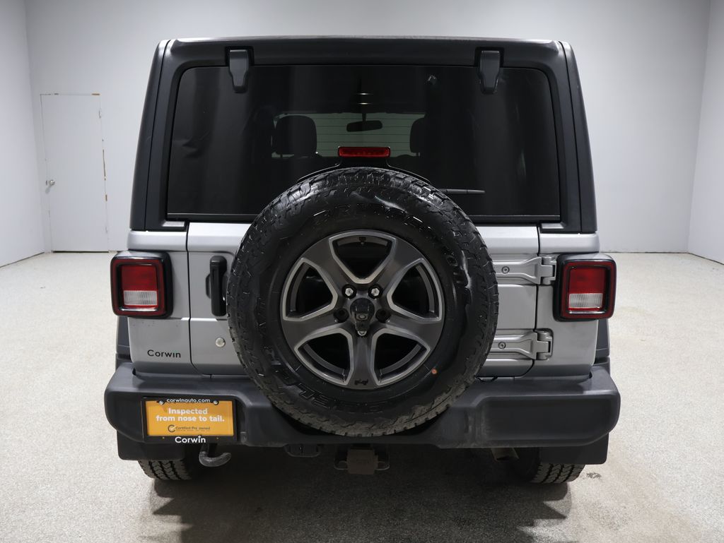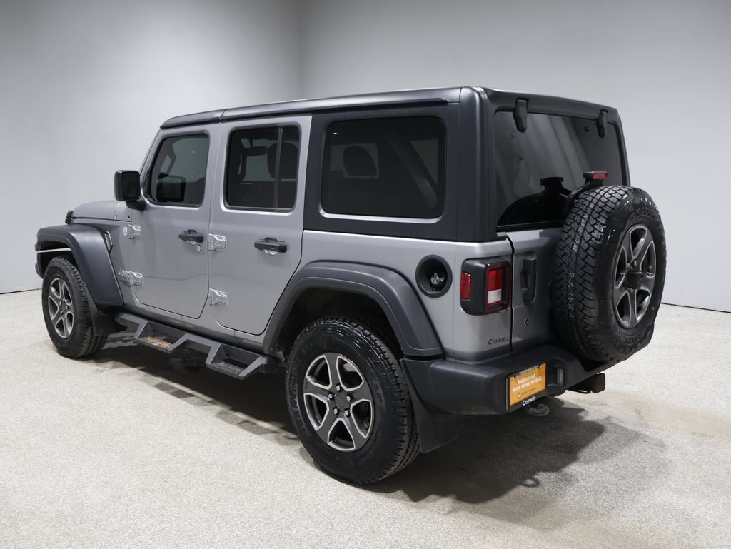This Jeep Wrangler is well equipped and includes these key features and benefits, Touchscreen Controls, Backup Camera, Automatic Headlights, Bluetooth Handsfree, AWD / 4x4 / Four Wheel, 240 Amp Alternator, 7 & 4 Pin Wiring Harness, 700 Amp Maintenance Free Battery, Automatic Headlamps, Auxiliary Switches, Class II Receiver Hitch, Cold Weather Group, Convenience Group, Deep Tint Sunscreen Windows, Front 1-Touch Down Power Windows, Heated Front Seats, Heated Steering Wheel, Leather Wrapped Steering Wheel, Power Heated Mirrors, Quick Order Package 24S Sport S, Remote Keyless Entry, Security Alarm, Speed Sensitive Power Locks, Sun Visors w/Illuminated Vanity Mirrors, Trailer Tow & HD Electrical Group, Universal Garage Door Opener, Wheels: 17" x 7.5" Tech Silver Aluminum. Odometer is 2926 miles below market average!