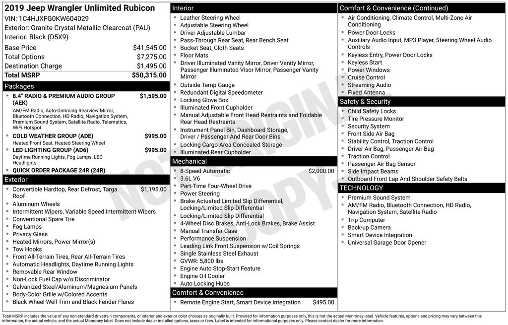 EMBRACE THE SHORTEST MONTH OF THE YEAR WITH CORWIN CHRYSLER DODGE JEEP RAM OF FARGO! WE HAVE SAVINGS ON ALL OF OUR PRE-OWNED VEHICLES AVAILABLE!!WE HAVE ONE OF THE LARGEST SELECTIONS OF INVENTORIES IN OUR AREA AT ONE SINGLE LOCATION!! Recent Arrival! Priced below KBB Fair Purchase Price! Granite Crystal Metallic Clearcoat 2019 Jeep Wrangler Unlimited Rubicon 4D Sport Utility 4WD 3.6L V6 24V VVT Clean CARFAX.