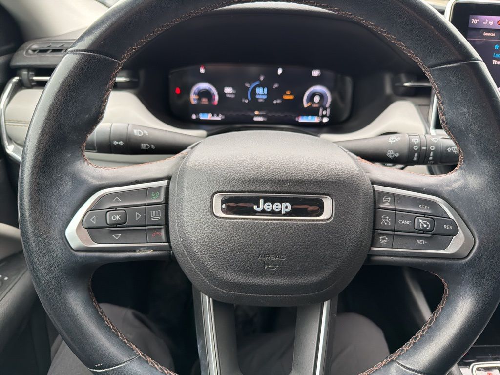 This Jeep Compass is well equipped and includes these key features and benefits, Heated and Cooled Seats, Touchscreen Controls, Backup Camera, Automatic Headlights, Bluetooth Handsfree, One Owner, AWD / 4x4 / Four Wheel, 10.1" Touchscreen Display, 115V Auxiliary Power Outlet, 2nd Row Heated Seats, 2nd Row USB Type A/C Charge Only, 4G LTE Wi-Fi Hot Spot, Alexa Built-In, Cluster 10.25" TFT Color Display, Connected Travel & Traffic Services, Disassociated Touchscreen Display, Driver Seat Memory, Elite Group, Foot Activated Open 'N Go Liftgate, For Details, Visit DriveUconnect.com, For More Info, Call 800-643-2112, Global Telematics Box Module (TBM), Gloss Black Door Cladding, Gloss Black Exterior Sill, Gloss Black Fascias, Gloss Black Wheel Flares, GPS Navigation, HD Radio, Integrated Voice Command w/Bluetooth, LED Low/Highbeam Projector Headlamps, No Satellite Coverage HI/AK/PR/VI/GU, Power 2-Way Passenger Lumbar Adjust, Power 8-Way Adjust Front Passenger Seat, Power Front/Fixed Rear Full Sunroof, Power Liftgate, Premium Alpine Speaker System, Premium Leather Trimmed Bucket Seats, Premium LED Fog Lamps, Premium Taillamps, Quick Order Package 2GG, Radio: Uconnect 5 Nav w/10.1" Display, Reversible Carpet/Vinyl Cargo Mat, SiriusXM Guardian - Included Trial (B), SiriusXM Radio Service, SiriusXM Satellite Radio, SiriusXM w/360L, Sun and Sound Group, Ventilated Front Seats, Wheels: 19" x 7.5" Painted Diamond Cut Aluminum. 22/30 City/Highway MPG