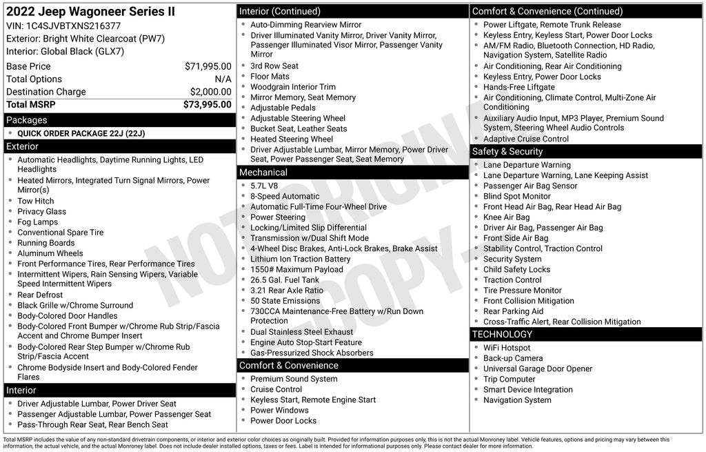 This Jeep Wagoneer is well equipped and includes these key features and benefits, Heated Seats, Touchscreen Controls, Backup Camera, Automatic Headlights, Bluetooth Handsfree, AWD / 4x4 / Four Wheel, Heated front seats, Navigation System, Quick Order Package 22J. Odometer is 3964 miles below market average!