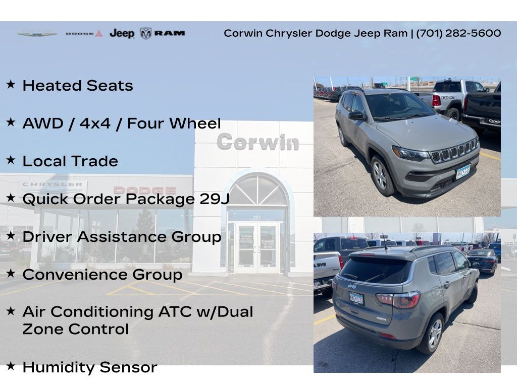 TIME TO SPRING INTO APRIL AT CORWIN CHRYSLER DODGE JEEP RAM OF FARGO!! WE HAVE SAVINGS ON ALL OF OUR PRE-OWNED VEHICLES AVAILABLE!! WE HAVE ONE OF THE LARGEST SELECTIONS OF INVENTORIES IN OUR AREA AT ONE SINGLE LOCATION !! Recent Arrival! Priced below KBB Fair Purchase Price! Sting-Gray Clearcoat 2023 Jeep Compass Latitude 4D Sport Utility 4WD 2.0L I4 DOHC CARFAX One-Owner.