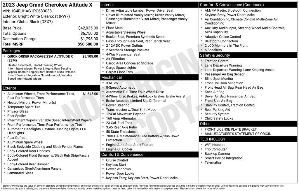 WELCOME TO DECEMBER AT CORWIN CHRYSLER DODGE JEEP RAM OF FARGO!! WE HAVE GREAT SAVINGS ON ALL OF OUR PRE-OWNED VEHICLES AVAILABLE!! WE HAVE ONE OF THE LARGEST SELECTIONS OF INVENTORIES IN OUR AREA AT ONE SINGLE LOCATION!! Recent Arrival! Bright White Clearcoat 2023 Jeep Grand Cherokee Altitude X 4D Sport Utility 4WD 3.6L V6 24V VVT CARFAX One-Owner.