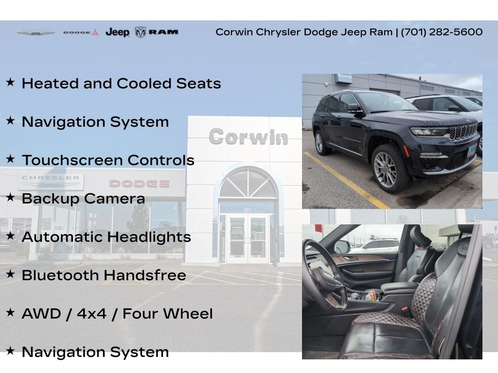 MARCHING INTO SPRING AT CORWIN CHRYSLER DODGE JEEP RAM OF FARGO!! WE HAVE SAVINGS ON ALL OF OUR PRE-OWNED VEHICLES AVAILABLE!! WE HAVE ONE OF THE LARGEST SELECTIONS OF INVENTORIES IN OUR AREA AT ONE SINGLE LOCATION!! Recent Arrival! Midnight Sky 2023 Jeep Grand Cherokee Summit 4D Sport Utility 4WD 3.6L V6 24V VVT CARFAX One-Owner. Clean CARFAX.