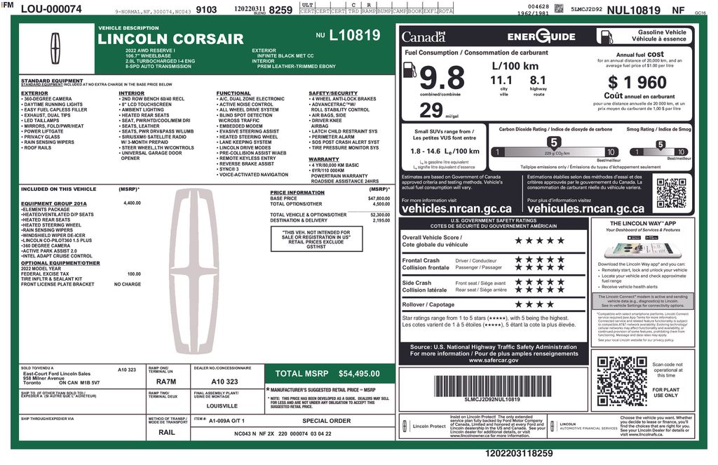 This Lincoln Corsair is well equipped and includes these key features and benefits, Heated Seats, Navigation System, Touchscreen Controls, Backup Camera, Automatic Headlights, Bluetooth Handsfree, AWD / 4x4 / Four Wheel, Elements Package, Equipment Group 201A, Heated front seats, Heated Rear Seat, Lincoln Co-Pilot360 1.5 Plus, Navigation System, Panoramic Vista Roof w/Power Sunshade. 21/29 City/Highway MPG