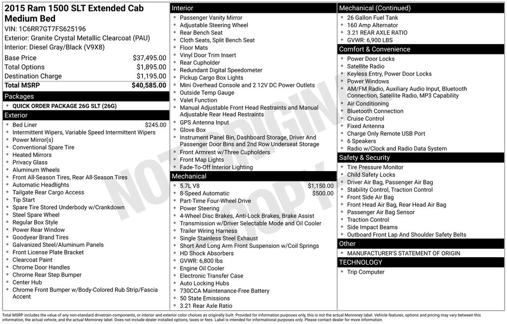 WELCOME TO DECEMBER AT CORWIN CHRYSLER DODGE JEEP RAM OF FARGO!! WE HAVE GREAT SAVINGS ON ALL OF OUR PRE-OWNED VEHICLES AVAILABLE!! WE HAVE ONE OF THE LARGEST SELECTION OF INVENTORIES IN OUR AREA AT ONE SINGLE LOCATION!! Recent Arrival! Granite Crystal Metallic Clearcoat 2015 Ram 1500 SLT 4D Quad Cab 4WD HEMI 5.7L V8 Multi Displacement VVT