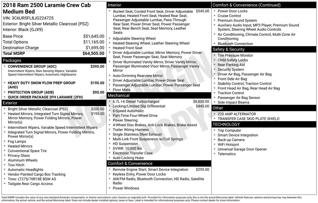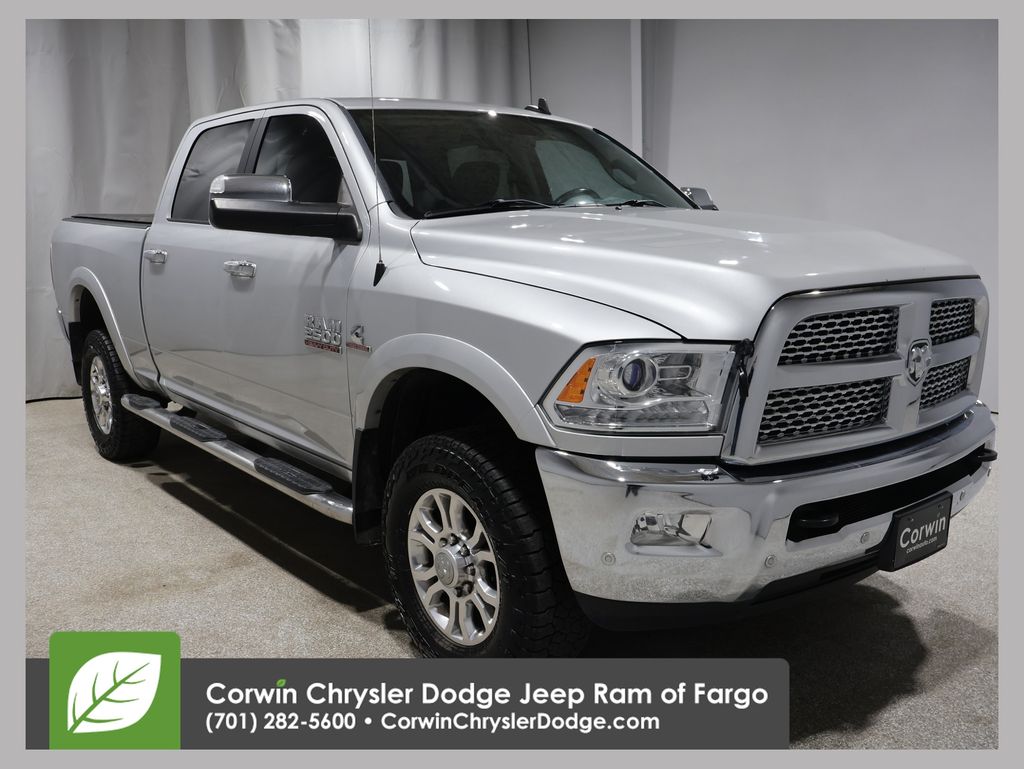 EMBRACE THE SHORTEST MONTH OF THE YEAR WITH CORWIN CHRYSLER DODGE JEEP RAM OF FARGO! WE HAVE SAVINGS ON ALL OF OUR PRE-OWNED VEHICLES AVAILABLE!! WE HAVE ONE OF THE LARGEST SELECTIONS OF INVENTORIES IN OUR AREA AT ONE SINGLE LOCATION!! New Price! Priced below KBB Fair Purchase Price! Bright Silver Metallic Clearcoat 2018 Ram 2500 Laramie 4D Crew Cab 4WD Cummins 6.7L I6 Turbodiesel