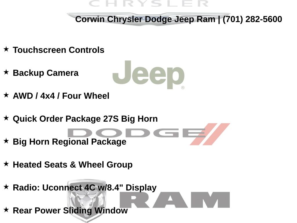 This Ram 1500 Classic is well equipped and includes these key features and benefits, Touchscreen Controls, Backup Camera, AWD / 4x4 / Four Wheel, Auto-Dimming Exterior Mirrors, Auto-Dimming Rear-View Mirror, Big Horn Badge, Big Horn Regional Package, Bright/Bright Billets Grille, Class IV Receiver Hitch, Cluster 7.0" TFT Color Display, Dual Rear Exhaust w/Bright Tips, Electric Shift-On-Demand Transfer Case, Exterior Mirrors Courtesy Lamps, Exterior Mirrors w/Supplemental Signals, Front Fog Lamps, Glove Box Lamp, Heated Front Seats, Heated Seats & Wheel Group, Heated Steering Wheel, Leather Wrapped Steering Wheel, LED Bed Lighting, Overhead Console w/Garage Door Opener, ParkSense Front/Rear Park Assist System, Power Heated Fold-Away Mirrors, Power-Folding Mirrors, Premium Cloth 40/20/40 Bench Seat, Quick Order Package 27S Big Horn, Radio: Uconnect 4C w/8.4" Display, Rear Dome w/On/Off Switch Lamp, Rear Floor Mats, Rear Power Sliding Window, Remote Start System, Security Alarm, Steering Wheel Mounted Audio Controls, Sun Visors w/Illuminated Vanity Mirrors, Wheels: 20" x 8" Aluminum Chrome Clad. Odometer is 44688 miles below market average!