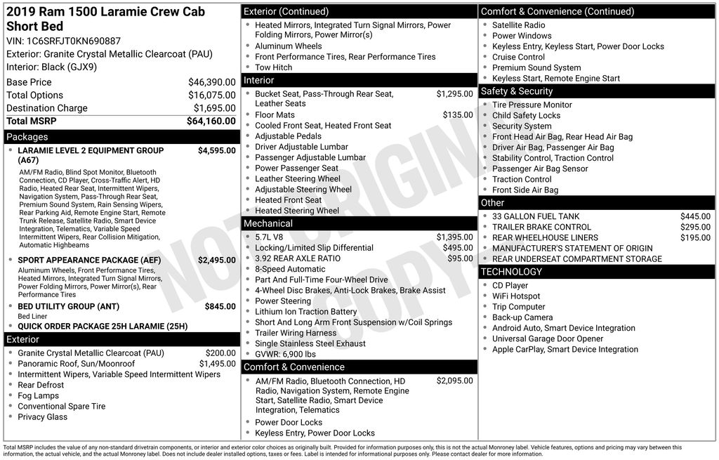 EMBRACE THE SHORTEST MONTH OF THE YEAR WITH CORWIN CHRYSLER DODGE JEEP RAM OF FARGO! WE HAVE SAVINGS ON ALL OF OUR PRE-OWNED VEHICLES AVAILABLE!!WE HAVE ONE OF THE LARGEST SELECTIONS OF INVENTORIES IN OUR AREA AT ONE SINGLE LOCATION!! Recent Arrival! Priced below KBB Fair Purchase Price! Granite Crystal Metallic Clearcoat 2019 Ram 1500 Laramie 4D Crew Cab 4WD HEMI 5.7L V8 Multi Displacement VVT