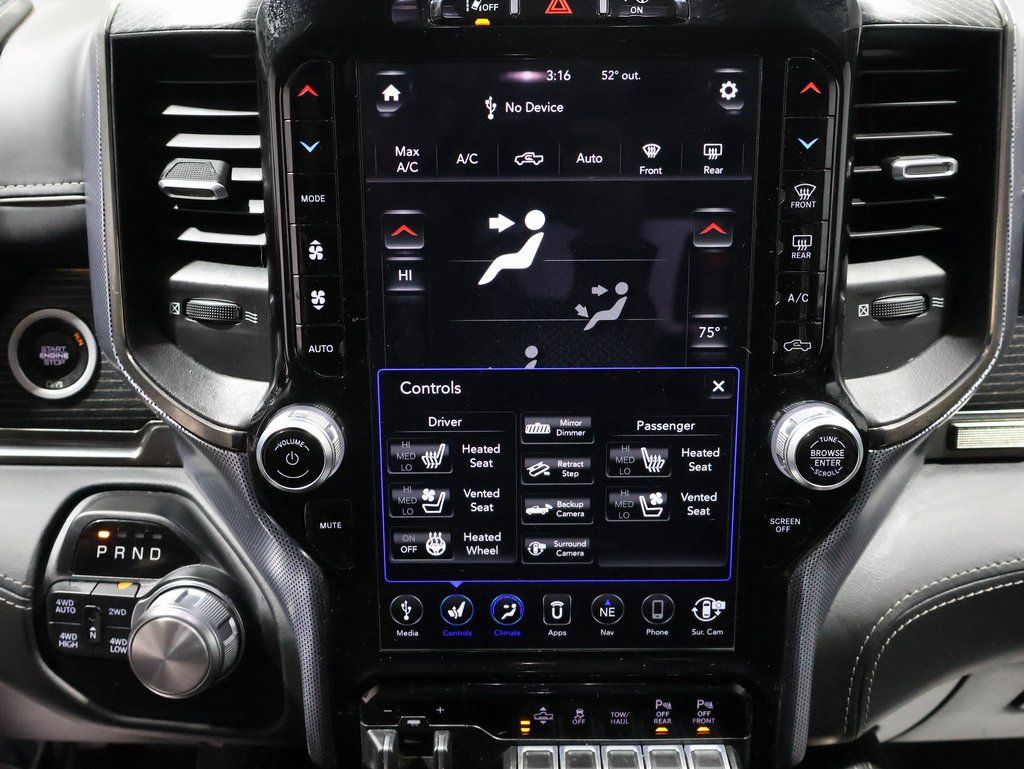 This Ram 1500 is well equipped and includes these key features and benefits, Heated and Cooled Seats, Touchscreen Controls, Backup Camera, Automatic Headlights, Bluetooth Handsfree, AWD / 4x4 / Four Wheel, Adaptive Cruise Control w/Stop & Go, Advanced Brake Assist, Body Color Bumper Group, Body Color Front Bumper, Body Color Rear Bumper w/Step Pads, Full Speed Forward Collision Warning Plus, Fully automatic headlights, GPS Navigation, harman/kardon 19 Speaker Premium Sound, Heated front seats, Lane Keep Assist, Limited Level 1 Equipment Group, Navigation System, Parallel & Perp Park Assist w/Stop, Power windows, Quick Order Package 25M Limited, Steering wheel mounted audio controls, Ventilated front seats, Ventilated Rear Seats. Odometer is 9979 miles below market average!