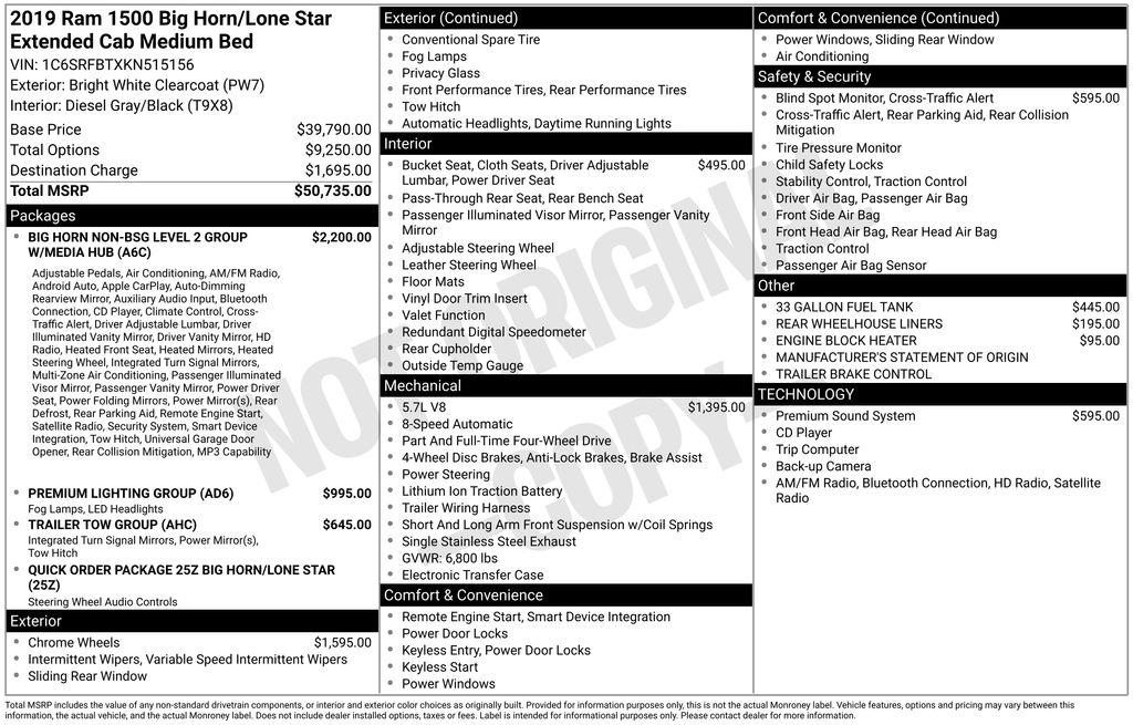 WELCOME TO DECEMBER AT CORWIN CHRYSLER DODGE JEEP RAM OF FARGO!! WE HAVE GREAT SAVINGS ON ALL OF OUR PRE-OWNED VEHICLES AVAILABLE!! WE HAVE ONE OF THE LARGEST SELECTIONS OF INVENTORIES IN OUR AREA AT ONE SINGLE LOCATION!! Bright White Clearcoat 2019 Ram 1500 Big Horn/Lone Star FACTORY CERTIFIED 4D Quad Cab 4WD HEMI 5.7L V8 Multi Displacement VVT Certified.