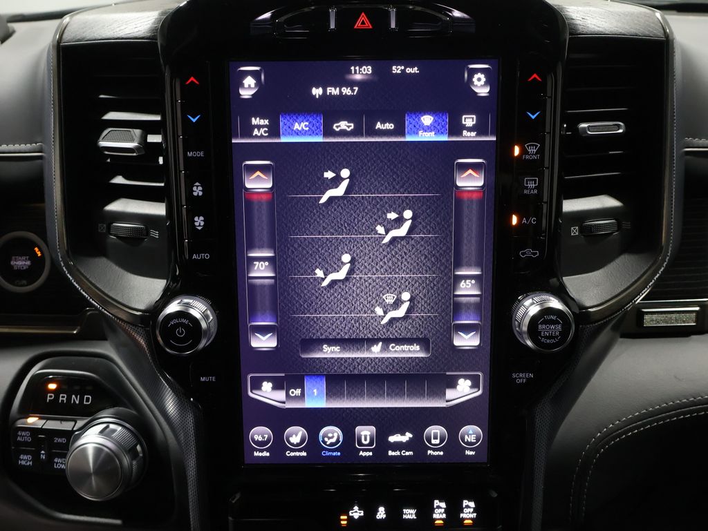 This Ram 1500 is well equipped and includes these key features and benefits, Heated and Cooled Seats, Touchscreen Controls, Backup Camera, Automatic Headlights, Bluetooth Handsfree, AWD / 4x4 / Four Wheel, GPS Navigation, Heated front seats, Navigation System, Quick Order Package 25M Limited, Ventilated front seats. Odometer is 27209 miles below market average!