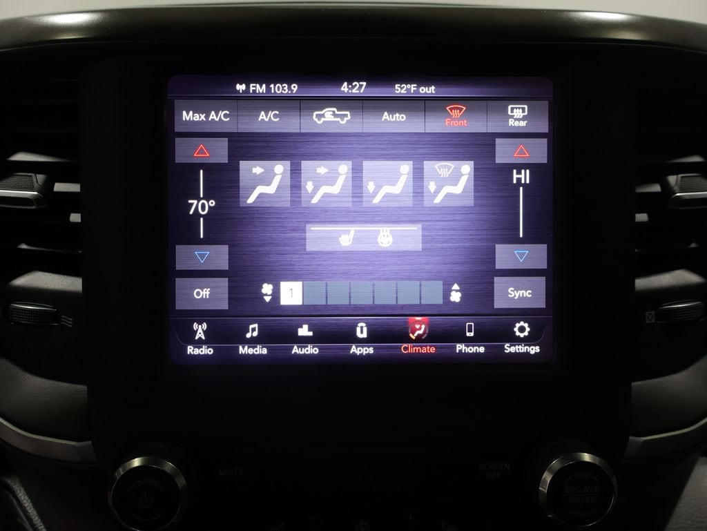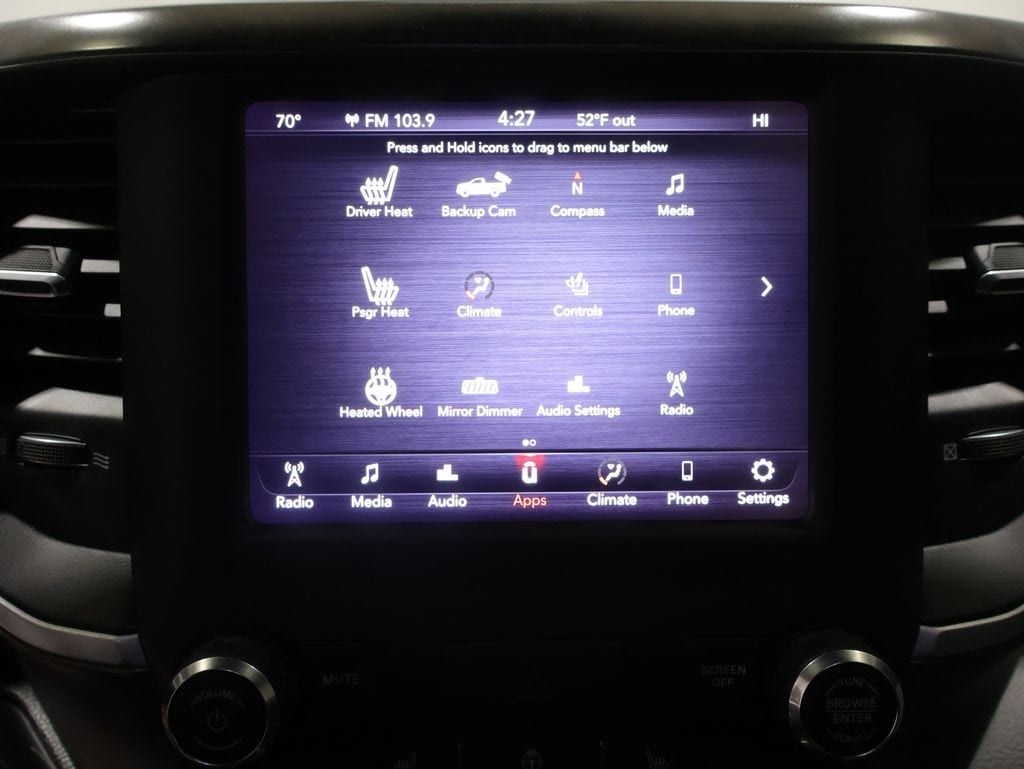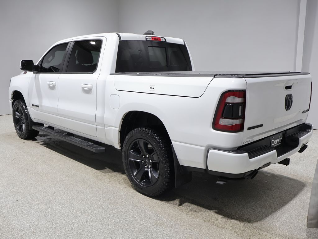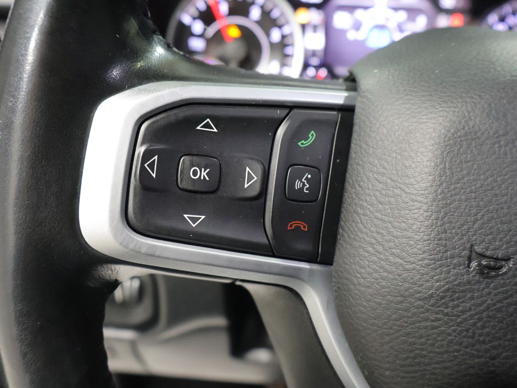 This Ram 1500 is well equipped and includes these key features and benefits, AWD / 4x4 / Four Wheel, Local Trade, 115V Auxiliary Power Outlet, 115V Auxiliary Rear Power Outlet, 2 USB Full Function/Charge Only Media Hub, 2nd Row In Floor Storage Bins, 4 Adjustable Cargo Tie-Down Hooks, 400W Inverter, Air Conditioning ATC w/Dual Zone Control, Anti-Spin Differential Rear Axle, Auto-Dimming Exterior Driver Mirror, Auto-Dimming Rear-View Mirror, Bed Utility Group, Big Horn Badge, Big Horn IP Badge, Big Horn Level 2 Equipment Group, Black Exterior Truck Badging, Black Headlamp Bezels, Black Interior Accents, Black Premium Power Mirrors, Body Color Door Handles, Body Color Exterior Mirrors, Body Color Front Bumper, Body Color Premium Power Mirrors, Body Color Rear Bumper w/Step Pads, Class IV Receiver Hitch, Cold Weather Group, Dampened Tailgate, Deluxe Cloth Bucket Seats, Deployable Bed Step, Dual Exhaust w/Black Tips, Engine Block Heater, Exterior Mirrors Courtesy Lamps, Exterior Mirrors w/Memory, Foam Bottle Insert (Door Trim Panel), Front LED Fog Lamps, Glove Box Lamp, Grille Surround 1 Black Texture 2 Black, Heated Front Seats, Heated Steering Wheel, LED Reflector Headlamps, LED Taillamps, Night Edition, ParkSense Front/Rear Park Assist w/Stop, Pick-Up Box Lighting, Power 4-Way Driver Lumbar Adjust, Power 8-Way Driver Seat, Power Adjustable Pedals, Power-Folding Mirrors, Premium Lighting Group, Quick Order Package 28Z Big Horn, Radio: Uconnect 4 w/8.4" Display, Rear Dome w/On/Off Switch Lamp, Rear Power Sliding Window, Rear Window Defroster, Security Alarm, SiriusXM Satellite Radio, Spray In Bedliner, Sun Visors w/Illuminated Vanity Mirrors, Universal Garage Door Opener, Wheels: 20" x 9.0" Premium Paint/Polished. 21/29 City/Highway MPG