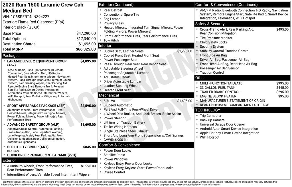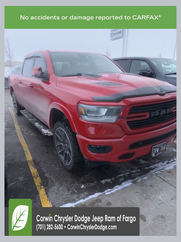 HAPPY JANUARY FROM CORWIN CHRYSLER DODGE JEEP RAM OF FARGO!! WE HAVE SAVINGS ON ALL OF OUR PRE-OWNED VEHICLES AVAILABLE!! WE HAVE ONE OF THE LARGEST SELECTIONS OF INVENTORIES IN OUR AREA AT ONE SINGLE LOCATION!! Recent Arrival! Priced below KBB Fair Purchase Price! Flame Red Clearcoat 2020 Ram 1500 Laramie 4D Crew Cab 4WD HEMI 5.7L V8 Multi Displacement VVT Clean CARFAX.