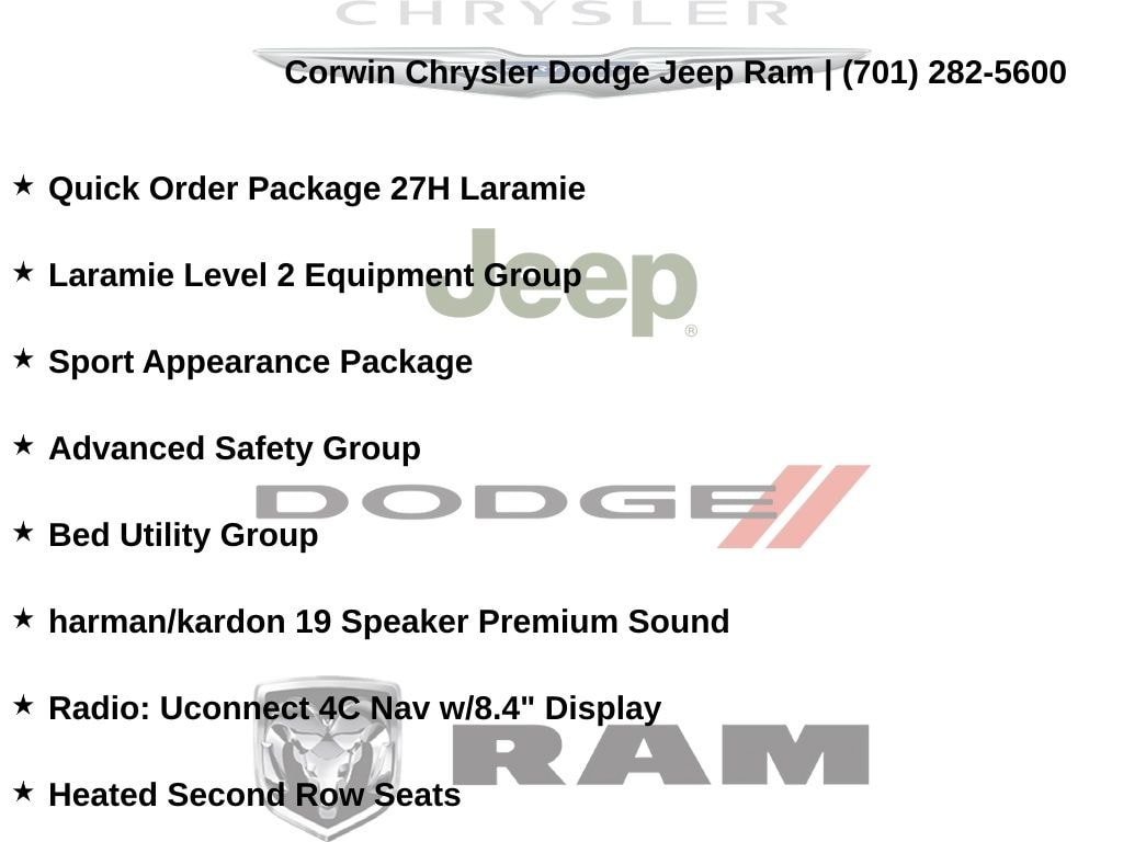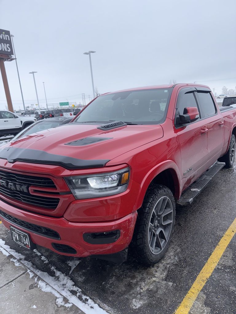 This Ram 1500 is well equipped and includes these key features and benefits, Heated and Cooled Seats, Navigation System, Touchscreen Controls, Backup Camera, Automatic Headlights, Bluetooth Handsfree, AWD / 4x4 / Four Wheel, 2nd Row In Floor Storage Bins, 4 Adjustable Cargo Tie-Down Hooks, Adaptive Cruise Control w/Stop & Go, Advanced Safety Group, Auto High Beam Headlamp Control, Bed Utility Group, Black Interior Accents, Blind Spot & Cross Path Detection, Body Color Door Handles, Body Color Exterior Mirrors, Body Color Front Bumper, Body Color Premium Power Mirrors, Body Color Rear Bumper w/Step Pads, Deployable Bed Step, Foam Bottle Insert (Door Trim Panel), Full Speed Forward Collision Warning Plus, GPS Navigation, Grille Surround 3 Body Color Tex 2 Black, harman/kardon 19 Speaker Premium Sound, Heated Second Row Seats, Lane Keep Assist, Laramie Level 2 Equipment Group, Parallel & Perp Park Assist w/Stop, ParkSense Front/Rear Park Assist w/Stop, Pick-Up Box Lighting, Quick Order Package 27H Laramie, Radio: Uconnect 4C Nav w/8.4" Display, Rain Sensitive Windshield Wipers, Rear 60/40 Folding Split Recline Seat, Rear Underseat Compartment Storage, Remote Tailgate Release, Sport Appearance Package, Sport Decal, Sport Performance Hood, Spray In Bedliner, Tailgate Ajar Warning Lamp, Wheels: 20" x 9" Premium Painted w/Inserts, Wireless Charging Pad. Odometer is 13247 miles below market average!