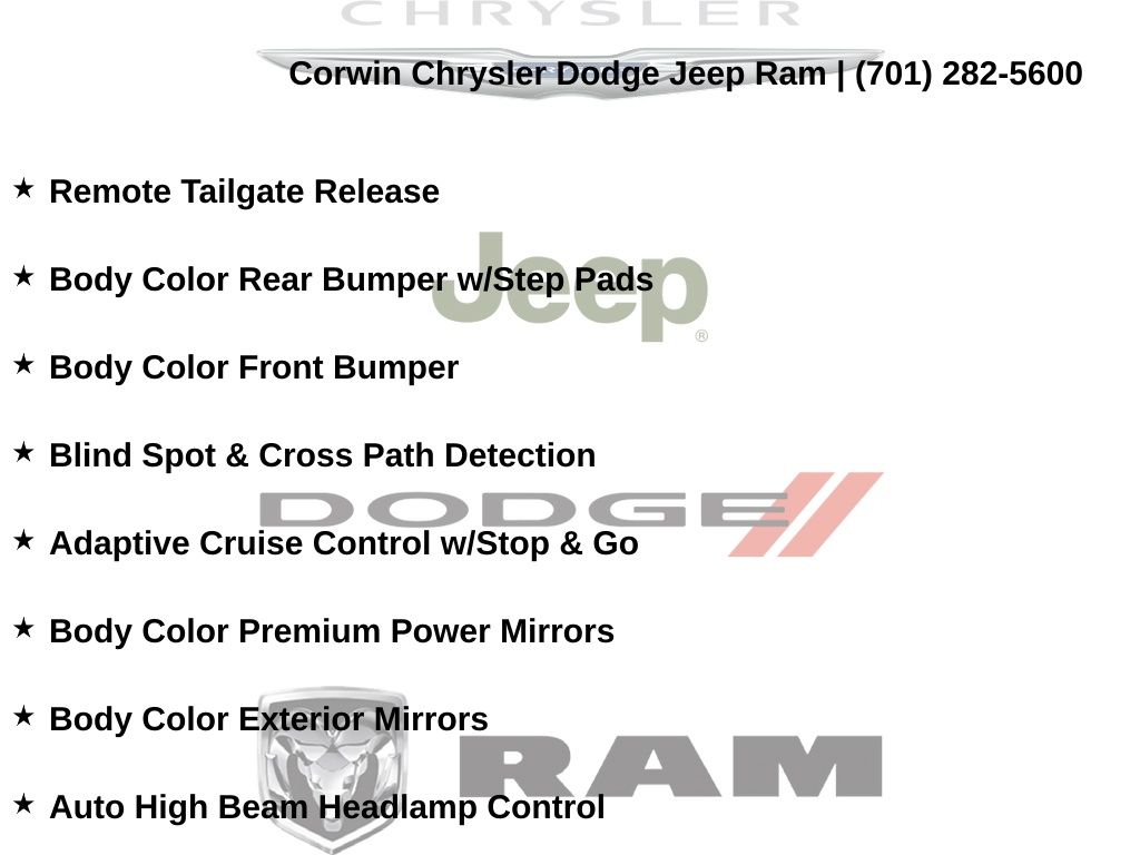 Corwin is the largest Chrysler Dodge Jeep Ram dealer in the region! We have a huge selection of new & used vehicles with financing options for everyone. Here at Corwin Chrysler Dodge Jeep Ram we're not only here to help you find your next car, we are your go-to source for all things automotive! Our expert dealership staff is here to help you with auto financing, car maintenance and repairs, or even finding the right parts for your next DIY project. Stop by our new and used car dealership in Fargo today and find out why folks keep coming back! We're here to help you get into the vehicle of your dreams and keep it running its best for many miles. Corwin Chrysler Dodge Jeep Ram 301 38th St S, Fargo, North Dakota CorwinChryslerDodge.com Corwin - Family Driven for Over 100 YearS.