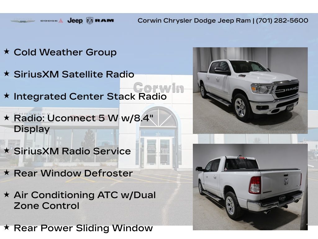 LETS MARCH INTO SPRING AT CORWIN CHRYSLER DODGE JEEP RAM OF FARGO!! WE HAVE SAVINGS ON ALL OF OUR PRE-OWNED VEHICLES AVAILABLE!! WE HAVE ONE OF THE LARGEST SELECTIONS OF INVENTORIES IN OUR AREA AT ONE SINGLE LOCATION!! Bright White Clearcoat 2022 Ram 1500 Big Horn/Lone Star 4D Crew Cab 4WD EcoDiesel 3.0L V6 CARFAX One-Owner.