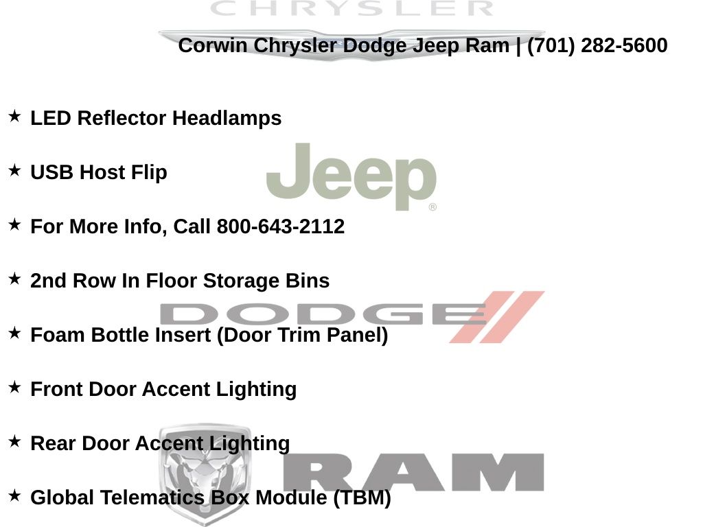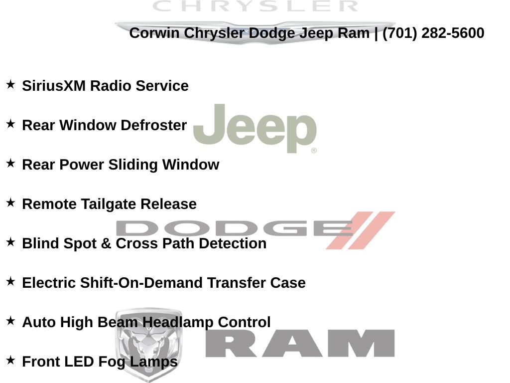 Corwin is the largest Chrysler Dodge Jeep Ram dealer in the region! We have a huge selection of new & used vehicles with financing options for everyone. Here at Corwin Chrysler Dodge Jeep Ram we're not only here to help you find your next car, we are your go-to source for all things automotive! Our expert dealership staff is here to help you with auto financing, car maintenance and repairs, or even finding the right parts for your next DIY project. Stop by our new and used car dealership in Fargo today and find out why folks keep coming back! We're here to help you get into the vehicle of your dreams and keep it running its best for many miles. Corwin Chrysler Dodge Jeep Ram 301 38th St S, Fargo, North Dakota CorwinChryslerDodge.com Corwin - Family Driven for Over 100 YearS.