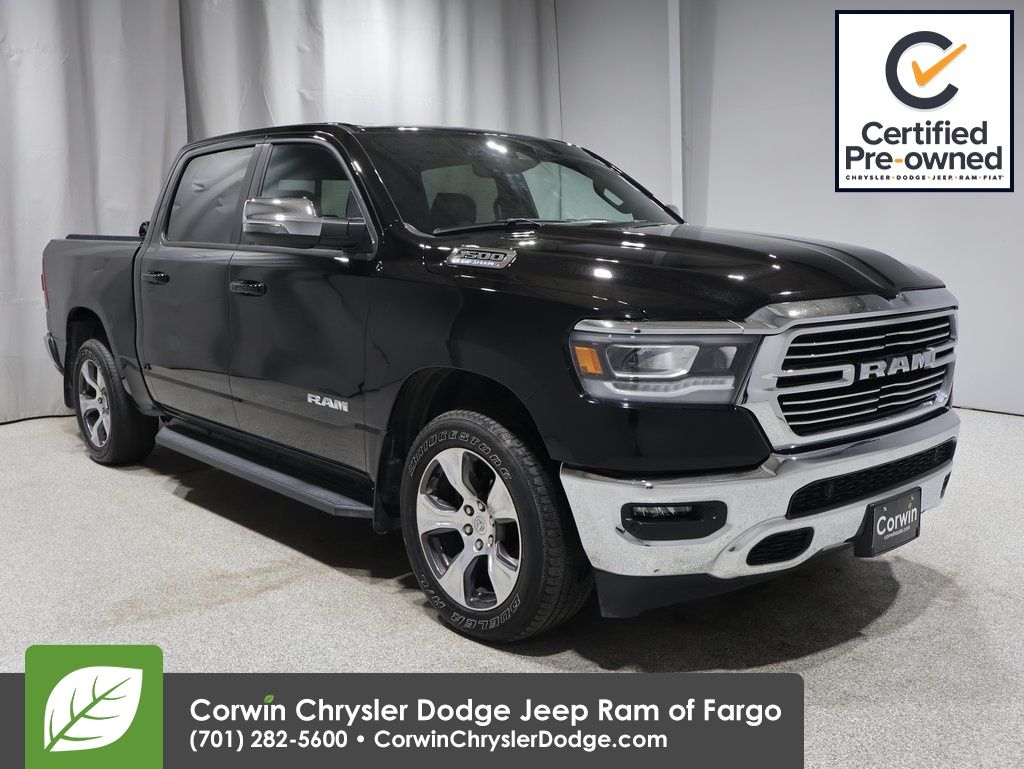 WELCOME TO DECEMBER AT CORWIN CHRYSLER DODGE JEEP RAM OF FARGO!! WE HAVE GREAT SAVINGS ON ALL OF OUR PRE-OWNED VEHICLES AVAILABLE!! WE HAVE ONE OF THE LARGEST SELECTIONS OF INVENTORIES IN OUR AREA AT ONE SINGLE LOCATION!! Diamond Black Crystal Pearlcoat 2023 Ram 1500 Laramie FACTORY CERTIFIED 4D Crew Cab 4WD HEMI 5.7L V8 Multi Displacement VVT eTorque Certified. CARFAX One-Owner. Clean CARFAX.