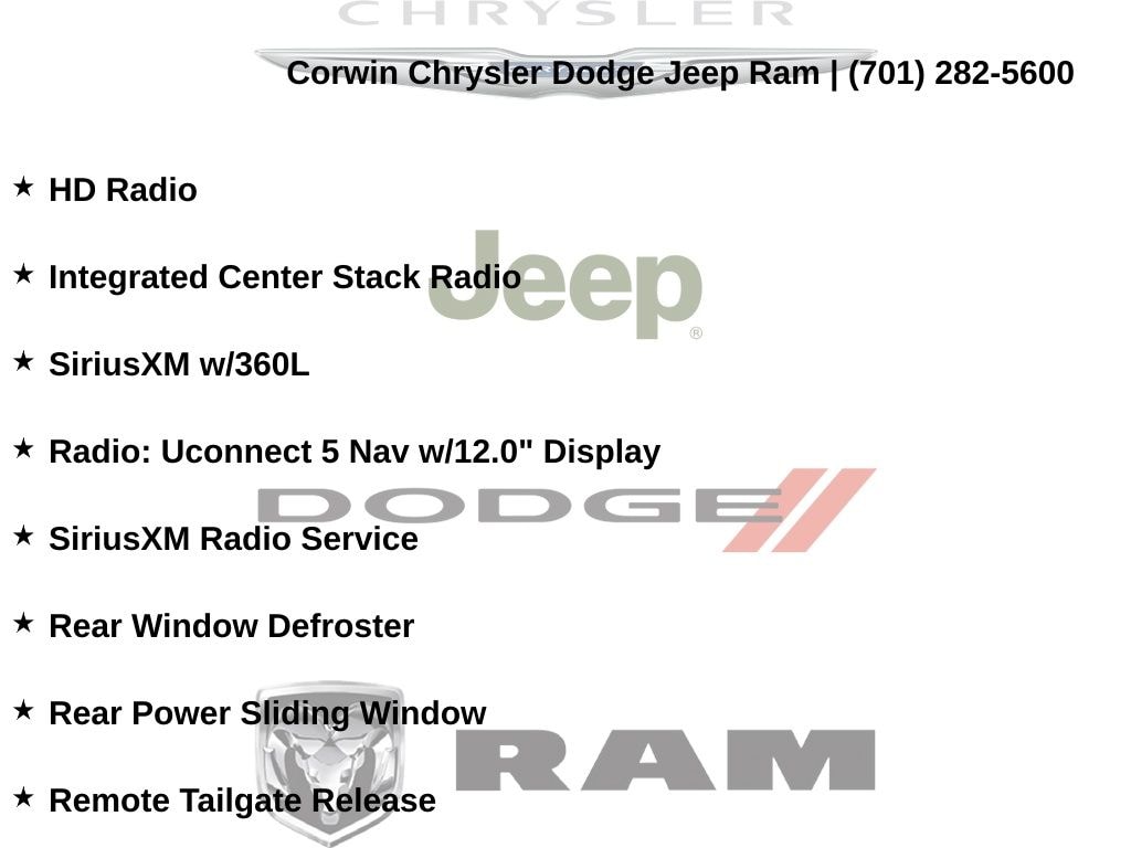 Corwin is the largest Chrysler Dodge Jeep Ram dealer in the region! We have a huge selection of new & used vehicles with financing options for everyone. Here at Corwin Chrysler Dodge Jeep Ram we're not only here to help you find your next car, we are your go-to source for all things automotive! Our expert dealership staff is here to help you with auto financing, car maintenance and repairs, or even finding the right parts for your next DIY project. Stop by our new and used car dealership in Fargo today and find out why folks keep coming back! We're here to help you get into the vehicle of your dreams and keep it running its best for many miles. Corwin Chrysler Dodge Jeep Ram 301 38th St S, Fargo, North Dakota CorwinChryslerDodge.com Corwin - Family Driven for Over 100 YearS.