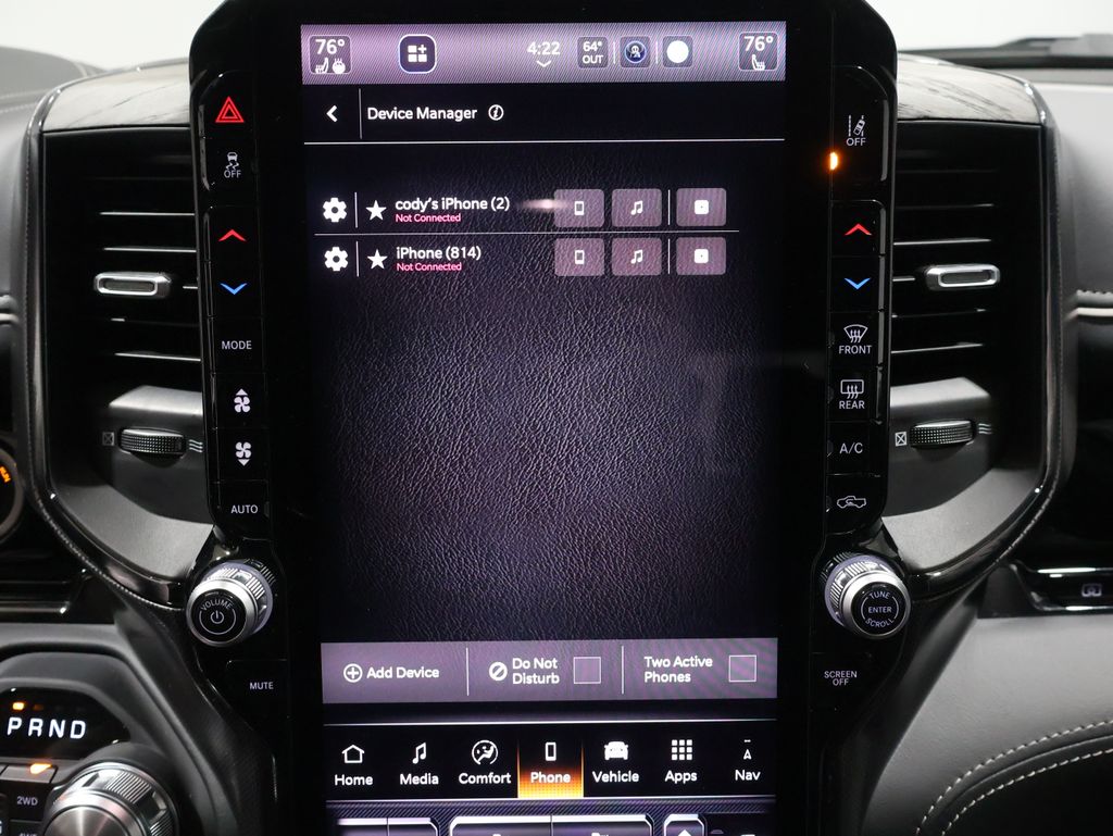 This Ram 1500 is well equipped and includes these key features and benefits, Heated and Cooled Seats, Navigation System, Touchscreen Controls, Backup Camera, Automatic Headlights, Bluetooth Handsfree, One Owner, Sunroof/Moonroof, AWD / 4x4 / Four Wheel, 12-Way/1-Way Trailer Connector, 14.4" Touchscreen Display, 240 Amp Alternator, 4G LTE Wi-Fi Hot Spot, Apple CarPlay, Bed Utility Group, Connected Travel & Traffic Services, Connectivity - US/Canada, Disassociated Touchscreen Display, Drowsy Driver Detection, Evasive Steer Assist, For Details, Visit DriveUconnect.com, Fully automatic headlights, Google Android Auto, GPS Antenna Input, GPS Navigation, Hands-Free Active Driving Assist System, HD Radio, Heads-Up Display, Heated front seats, Integrated Voice Command w/Bluetooth, Intersection Collision Assist System, LED CHMSL Lamp, Limited Level A Equipment Group, MOPAR 4 Adjustable Cargo Tie-Down Hooks, Navigation System, Power passenger seat, Power windows, Quick Order Package 22M Limited, Radio: Uconnect 5 Nav w/14.4" Display, SiriusXM w/360L, Smartphone As A Key Capable, Steering wheel mounted audio controls, Surround View Camera System, Traffic Sign Recognition, Tri-Fold Tonneau Cover, Truck Bed Cargo Divider, USB Host Flip, Ventilated front seats. Odometer is 15583 miles below market average!