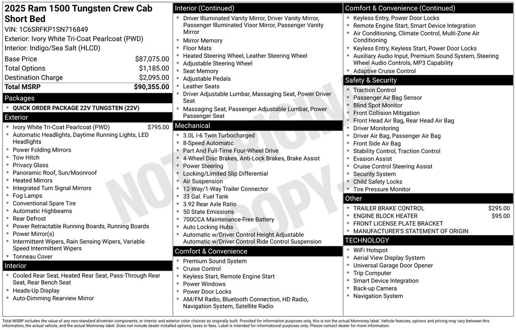 HAPPY HOLIDAYS FROM CORWIN CHRYSLER DODGE JEEP RAM OF FARGO!! WE HAVE STOCKINGS FULL OF SAVINGS ON ALL OF OUR PRE-OWNED VEHICLES AVAILABLE!! WE HAVE ONE OF THE LARGEST SELECTION OF INVENTORIES IN OUR AREA AT ONE SINGLE LOCATION!! Recent Arrival! Ivory White Tri-Coat Pearlcoat 2025 Ram 1500 Tungsten 4D Crew Cab 4WD 3.0L I6