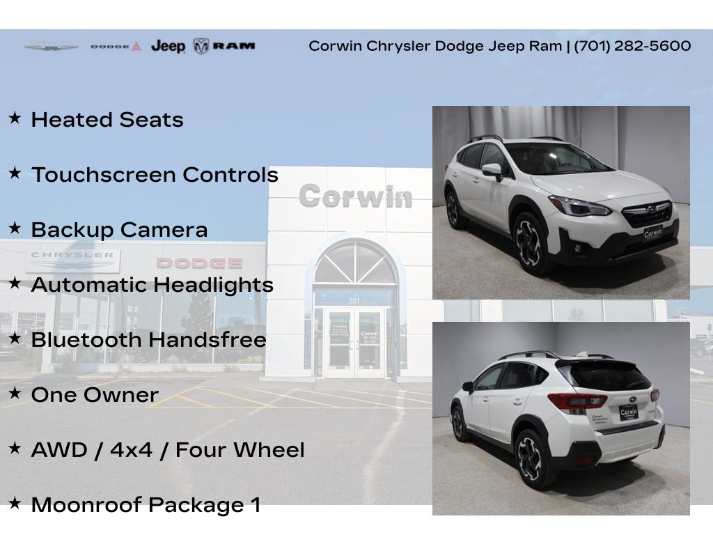 LETS MARCH INTO SPRING AT CORWIN CHRYSLER DODGE JEEP RAM OF FARGO!! WE HAVE SAVINGS ON ALL OF OUR PRE-OWNED VEHICLES AVAILABLE!! WE HAVE ONE OF THE LARGEST SELECTIONS OF INVENTORIES IN OUR AREA AT ONE SINGLE LOCATION!! Recent Arrival! Priced below KBB Fair Purchase Price! Crystal White Pearl 2021 Subaru Crosstrek Limited 4D Sport Utility AWD 2.5L DOHC CARFAX One-Owner. Clean CARFAX.